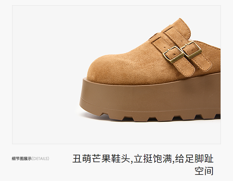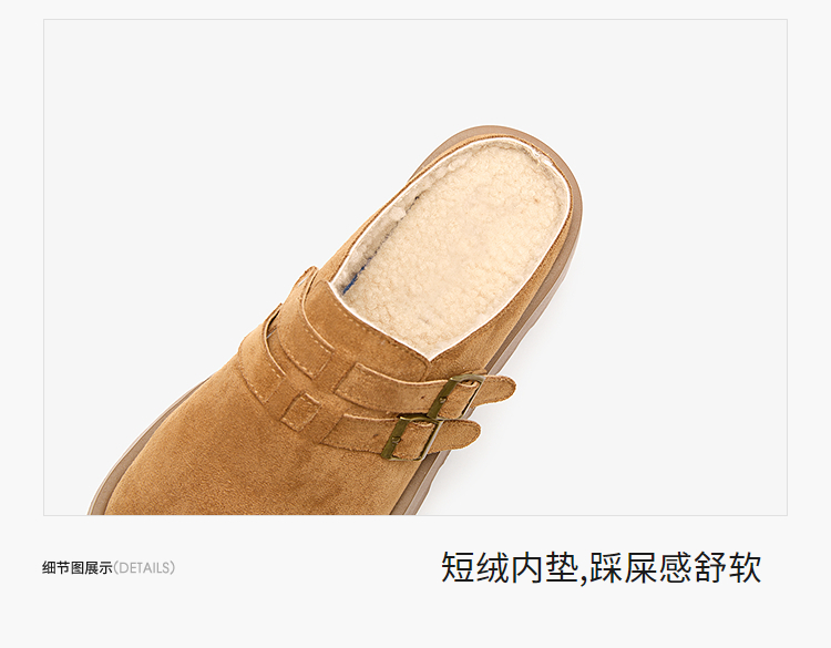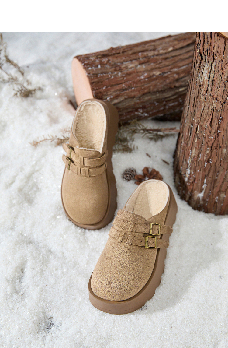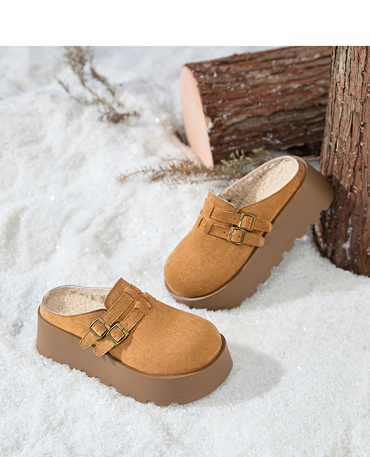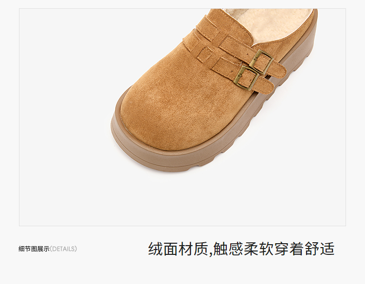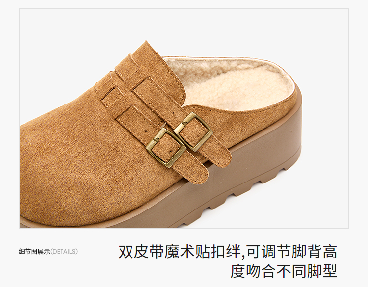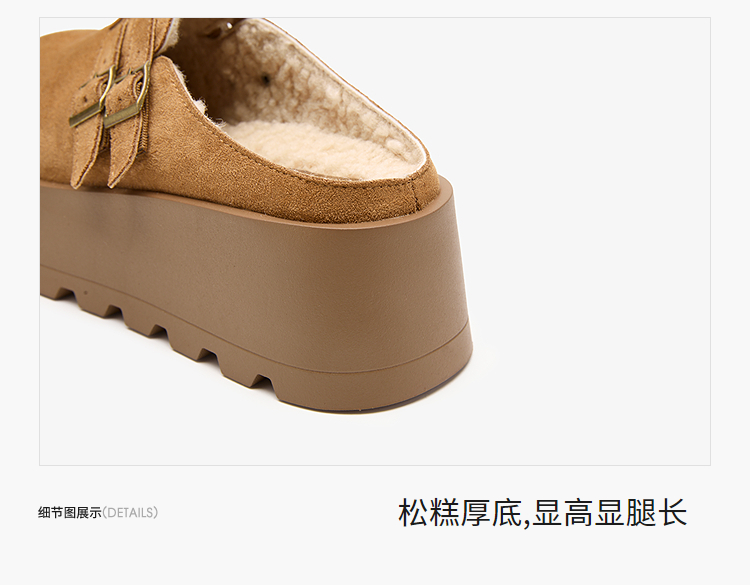 西遇厚底加绒勃肯鞋半拖女新款秋冬保暖毛毛鞋增高外穿拖鞋V2457314
