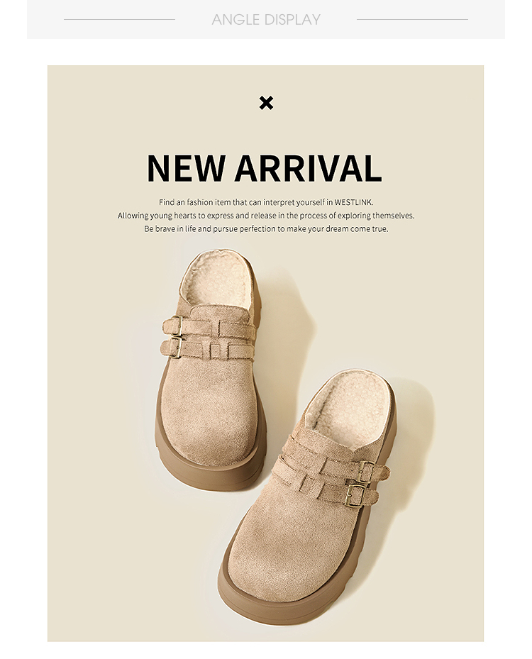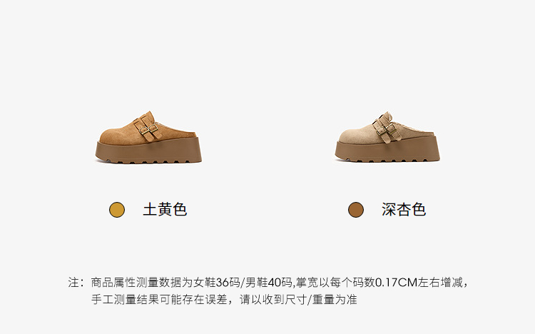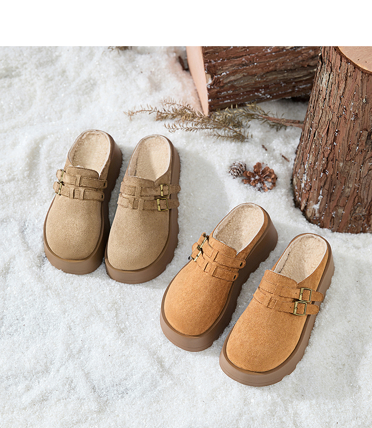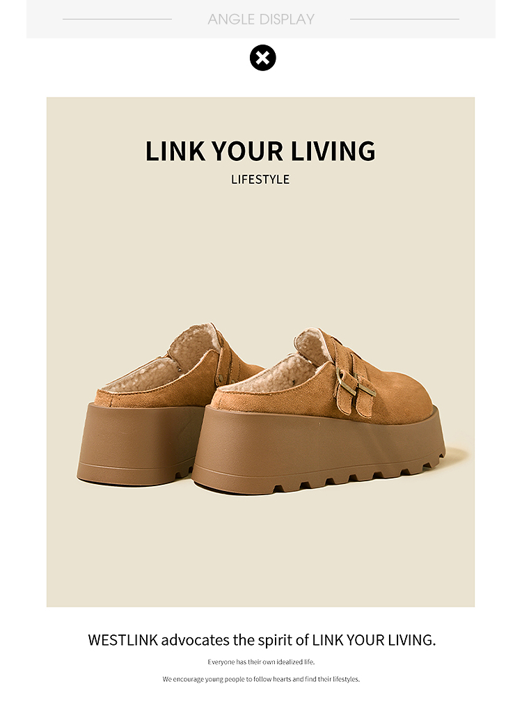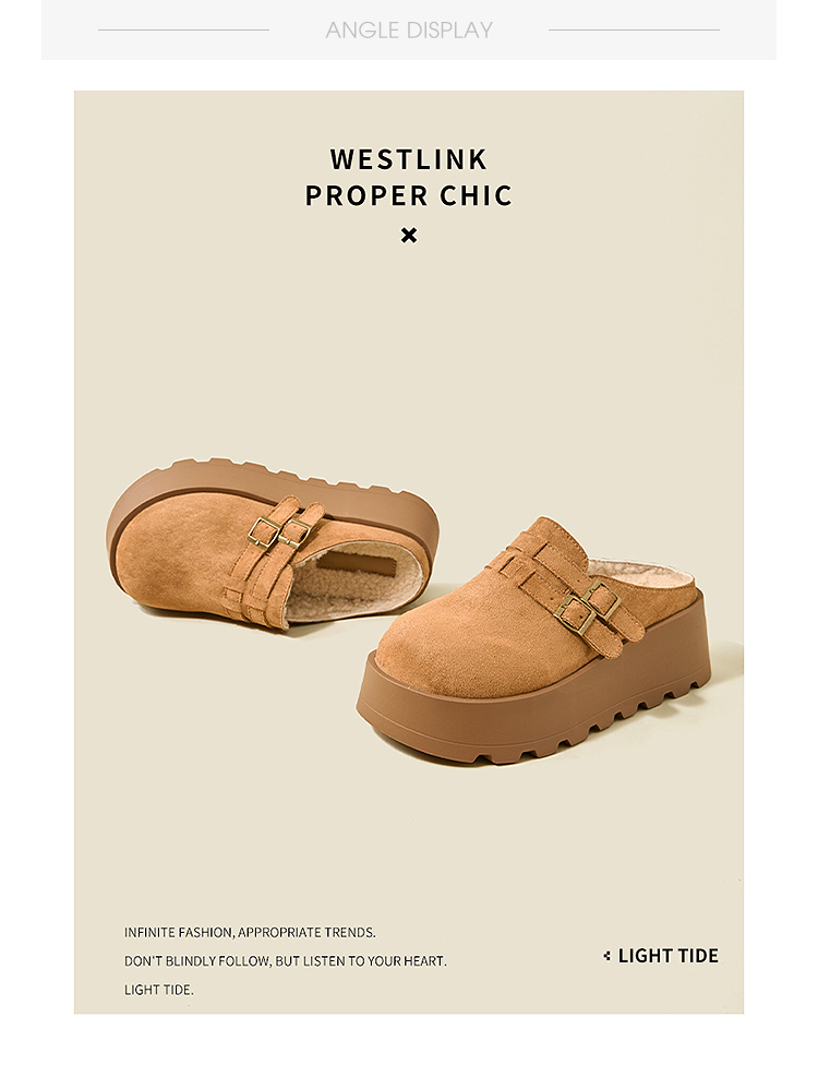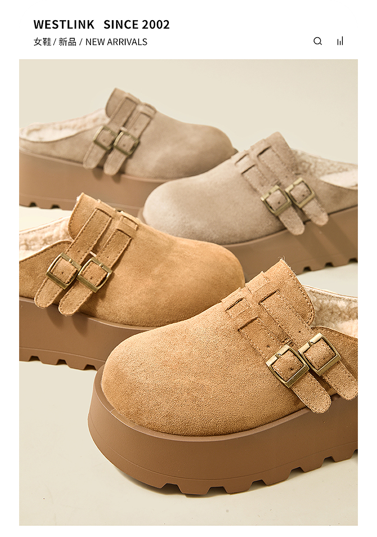 西遇厚底加绒勃肯鞋半拖女新款秋冬保暖毛毛鞋增高外穿拖鞋V2457314