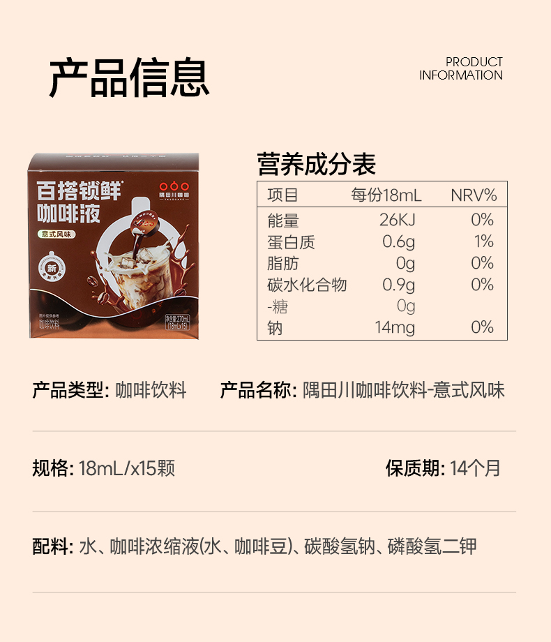 【新升级】隅田川意式锁鲜咖啡4.0浓缩液0糖0脂速溶冰美式黑咖啡拿铁18ml*15颗