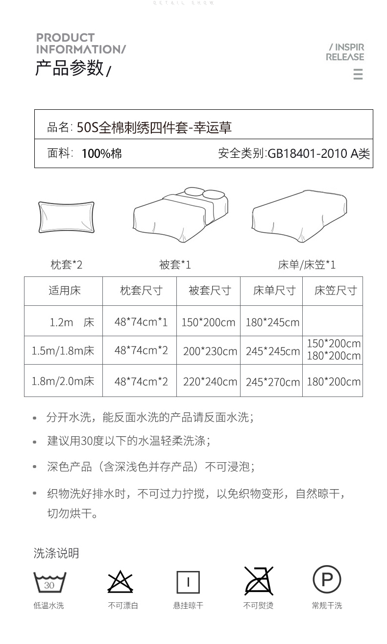 自然醒A类亲肤50支全棉四件套-幸运草AN