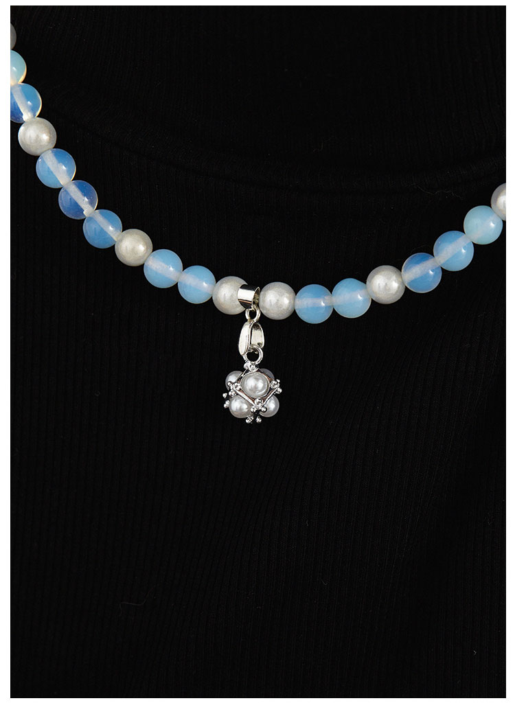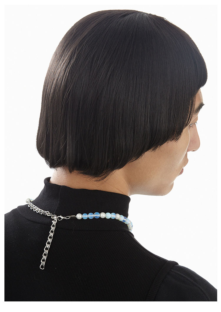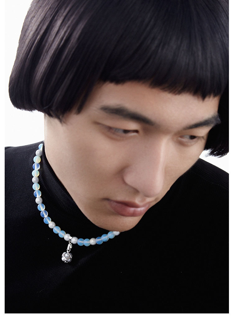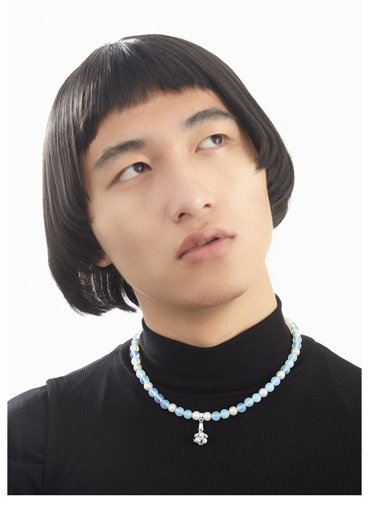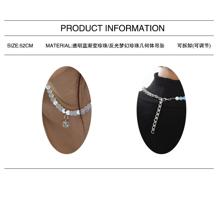 QZC2000 Y2K透明渐变蓝拼接反光梦幻珍珠几何体吊坠串珠男女同款
