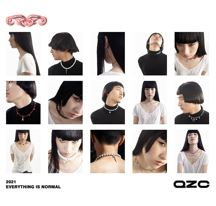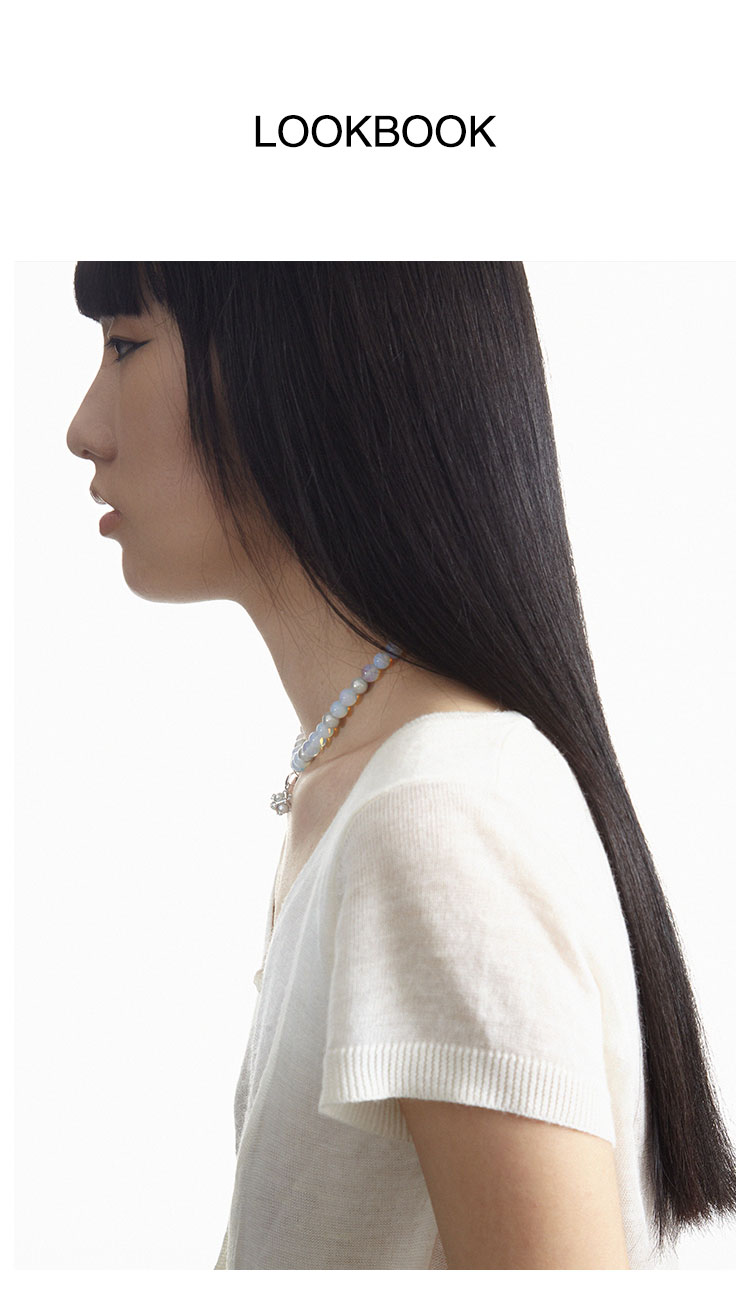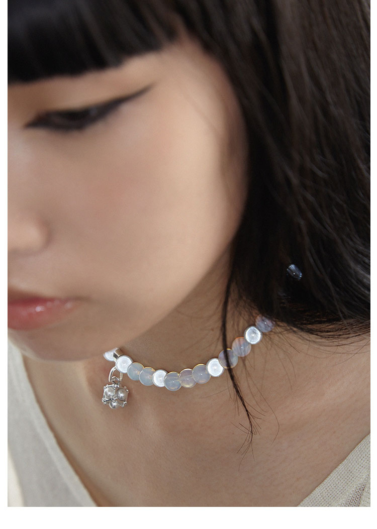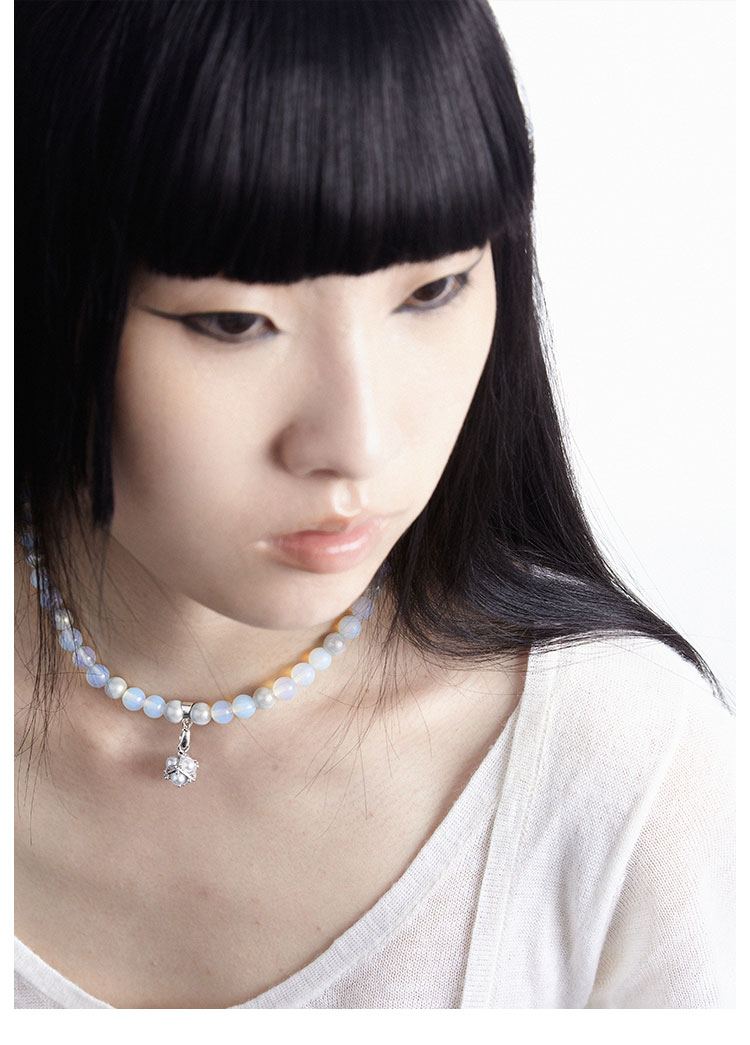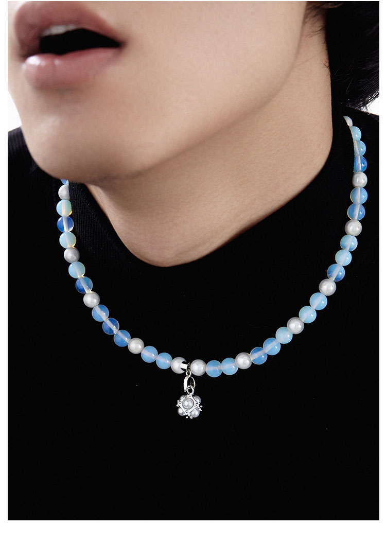 QZC2000 Y2K透明渐变蓝拼接反光梦幻珍珠几何体吊坠串珠男女同款