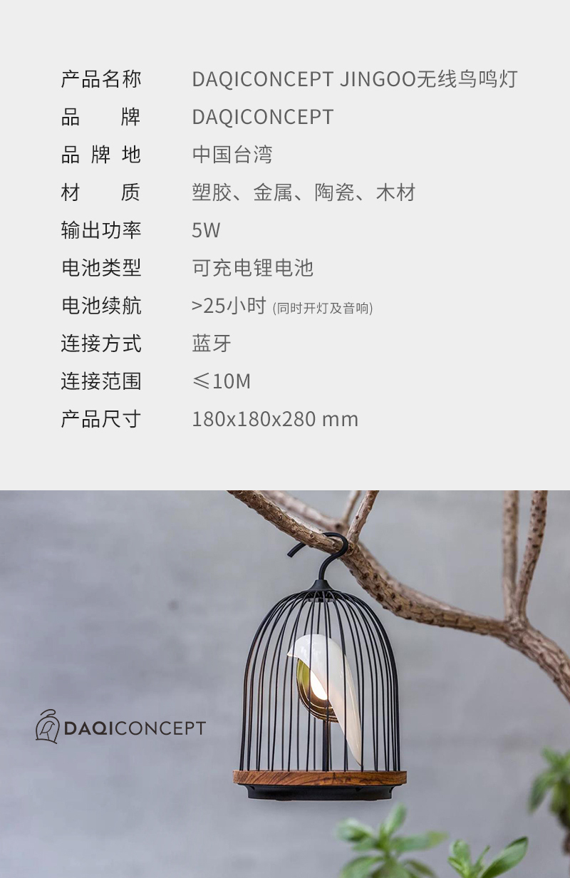 【已下架】DAQICONCEPT JINGOO无线鸟鸣灯蓝牙音响-白眉鸟/青鸟 [福利品]