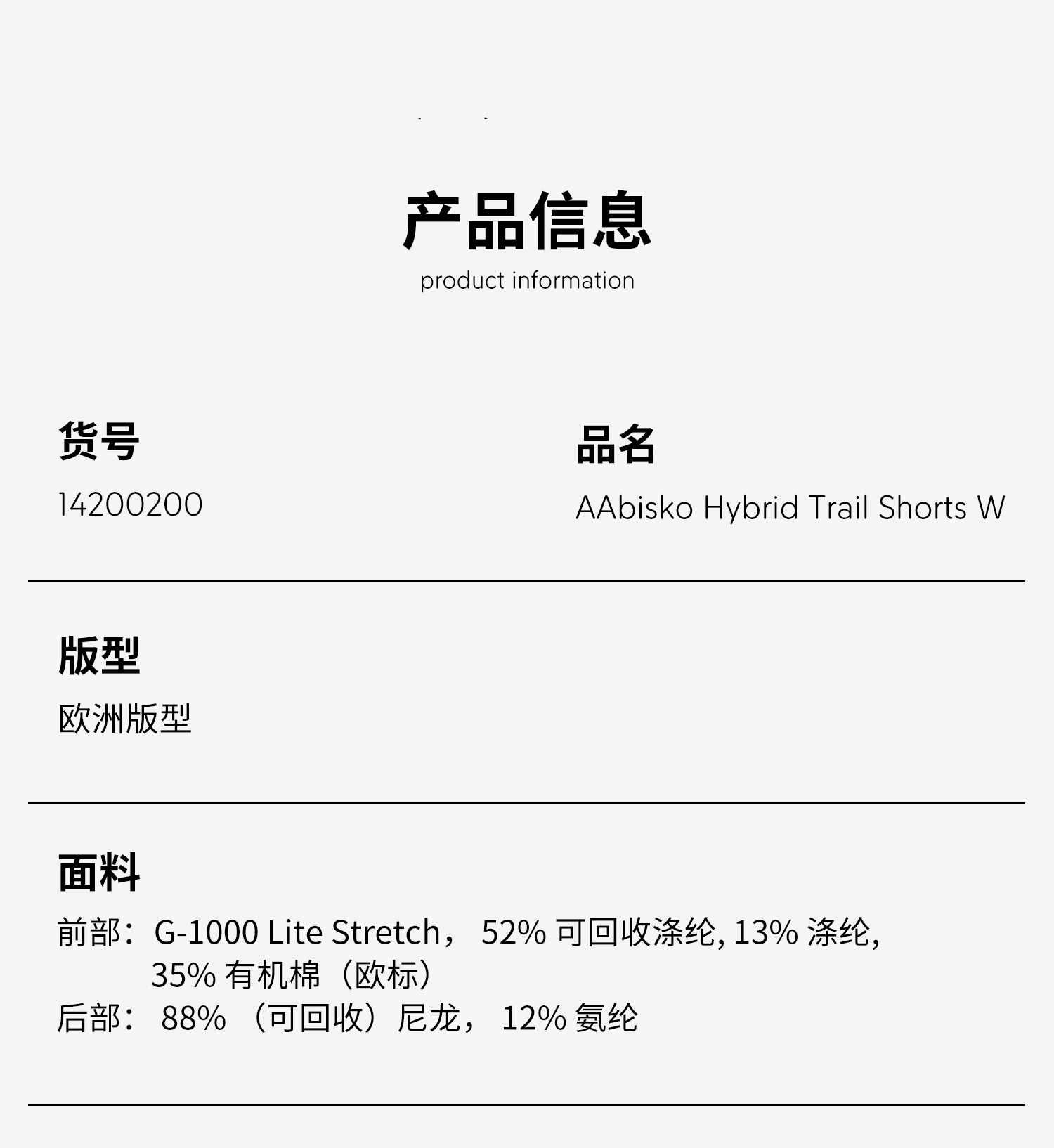 北极狐 女士G1000户外短裤 2025春夏徒步登山裤运动裤14200200