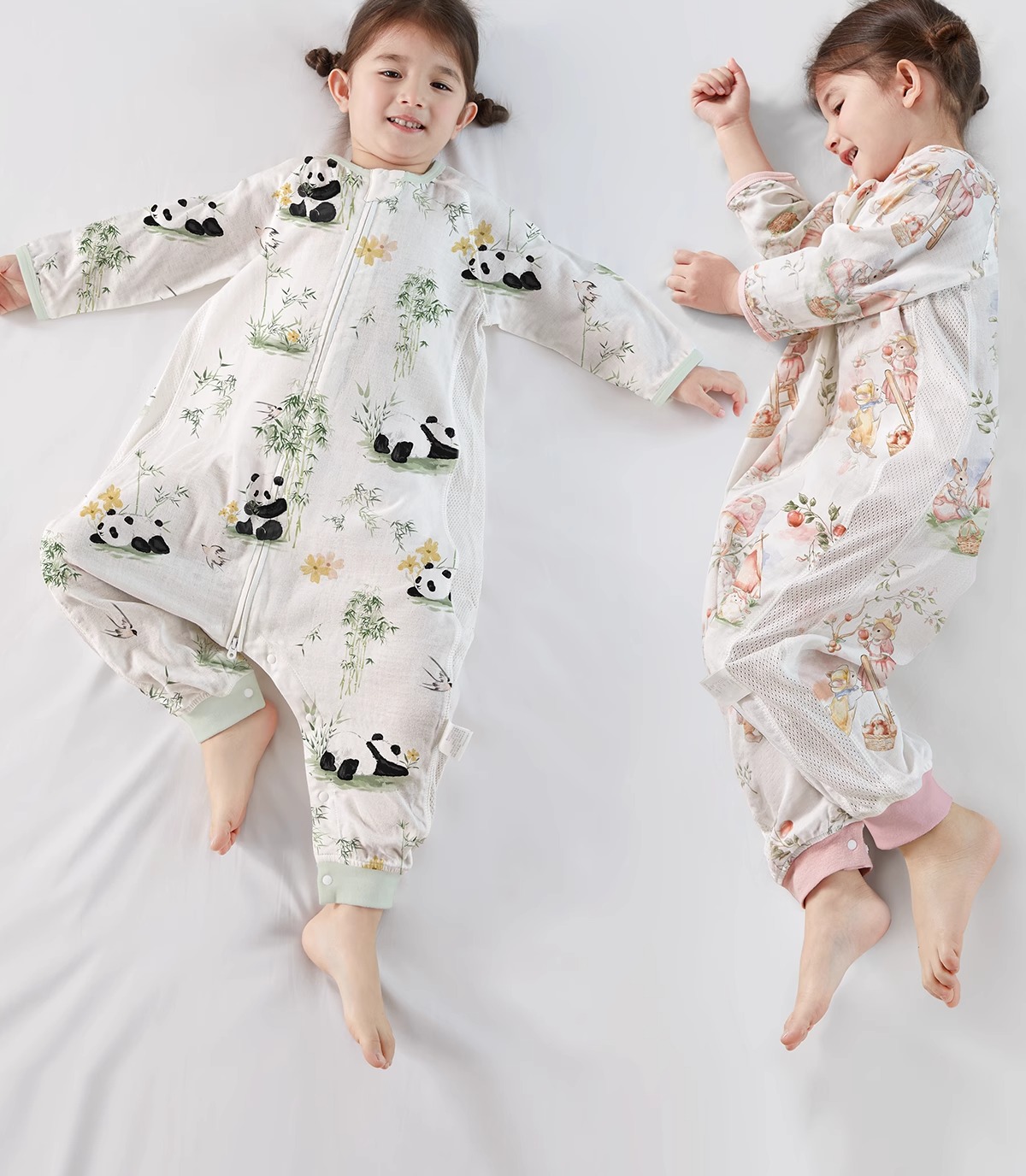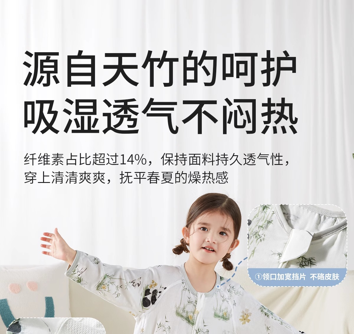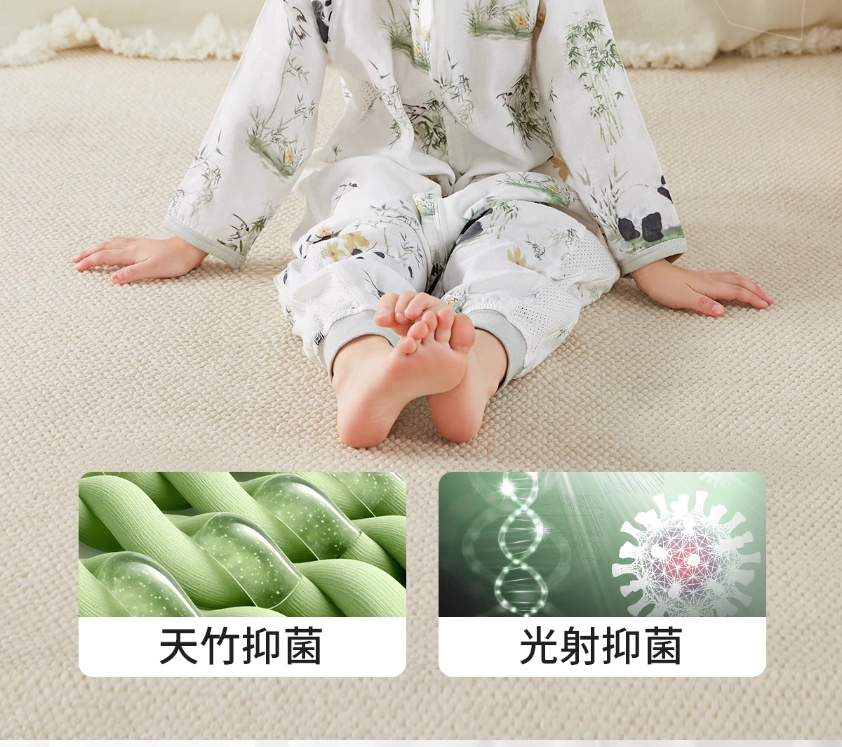 科巢儿童连体睡衣七分袖女童男孩宝宝家居服衣春秋夏季薄款桑蚕丝