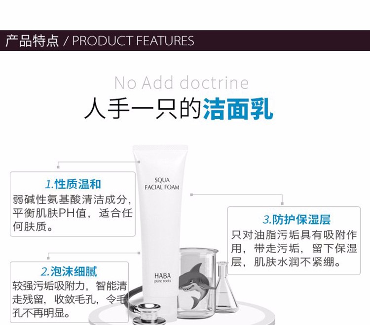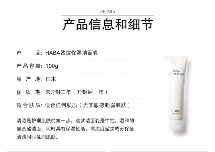 HABA无添加鲨烷保湿洁面乳,专为干性敏感肌设计,清洁力度也很赞。无添加无刺激,泡沫细腻,质地非常温和,