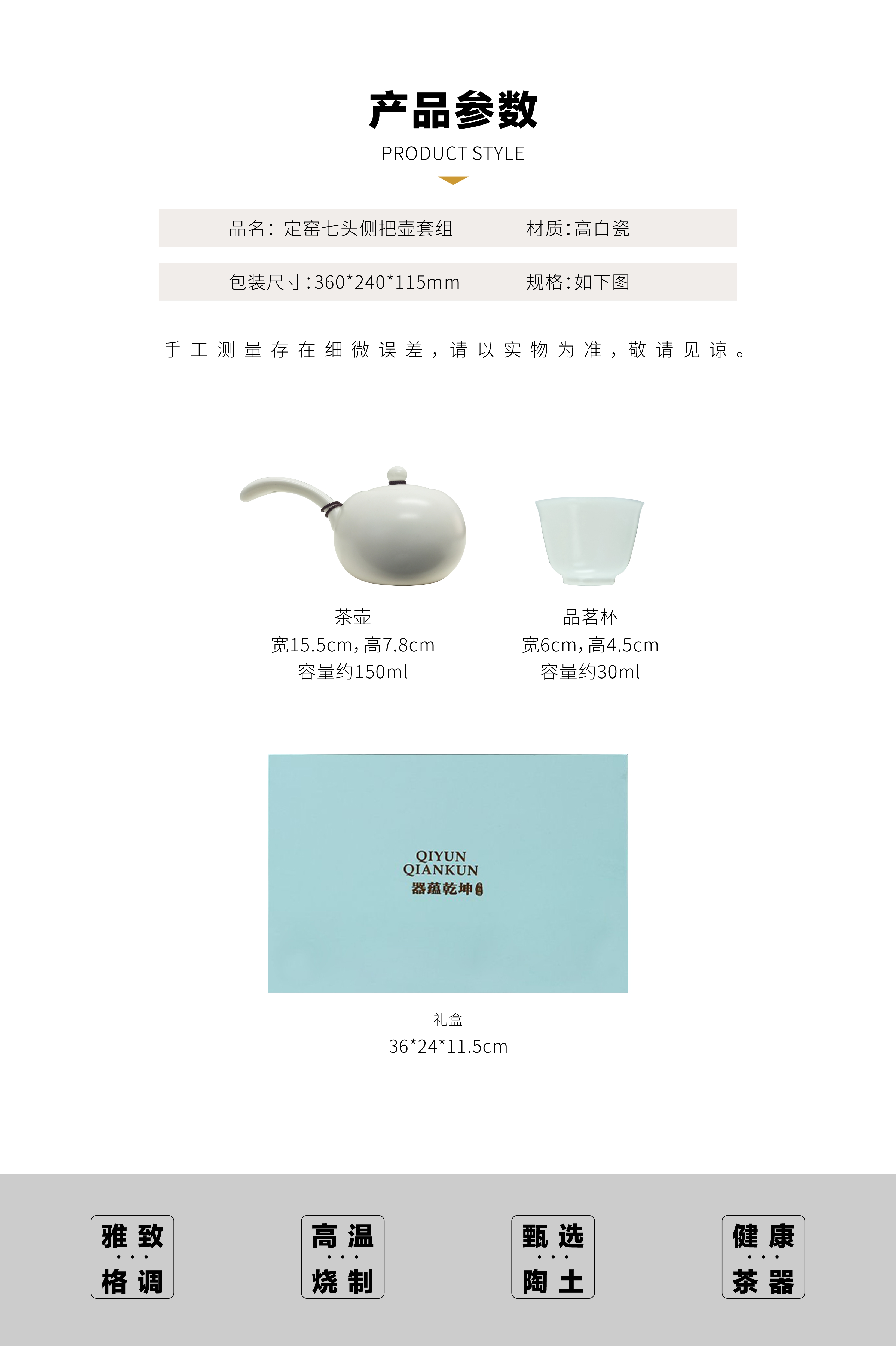 定窑侧把壶茶具套组