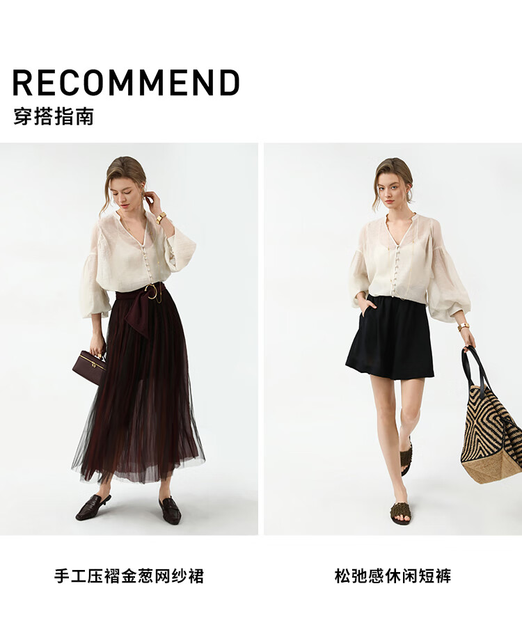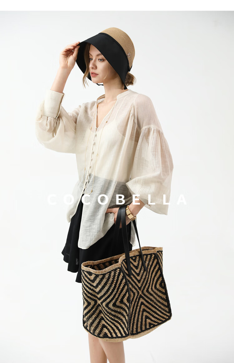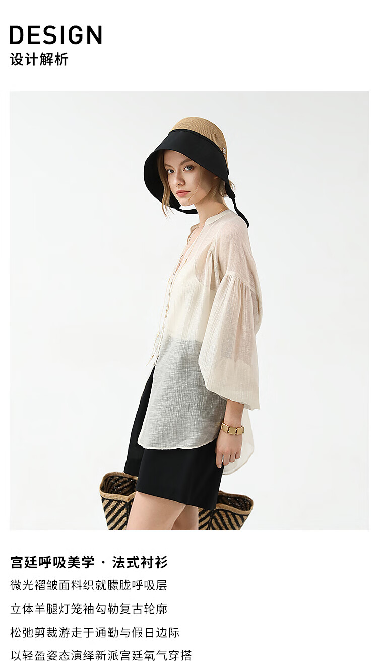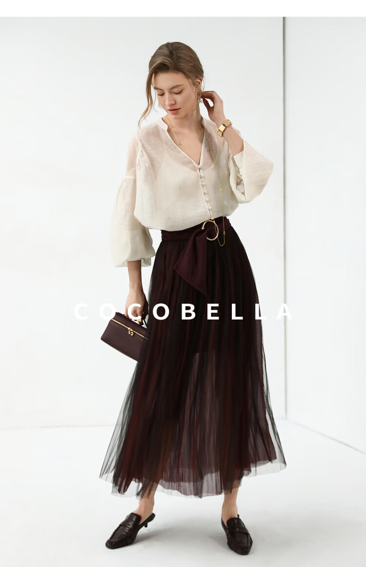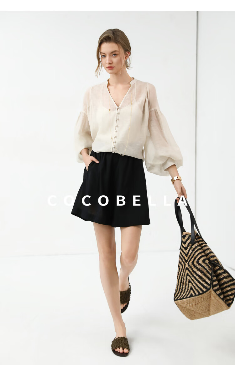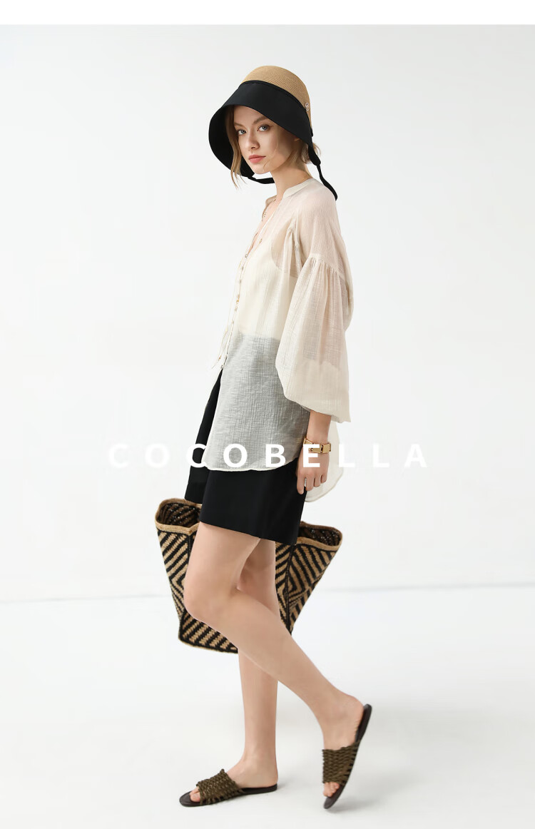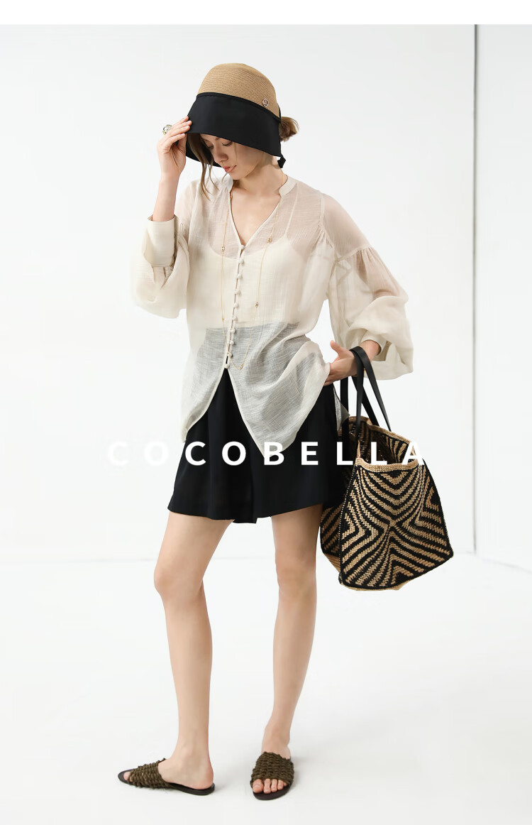 COCOBELLA新中式手工盘扣肌理感V领衬衫立领微透视开衫SR3081