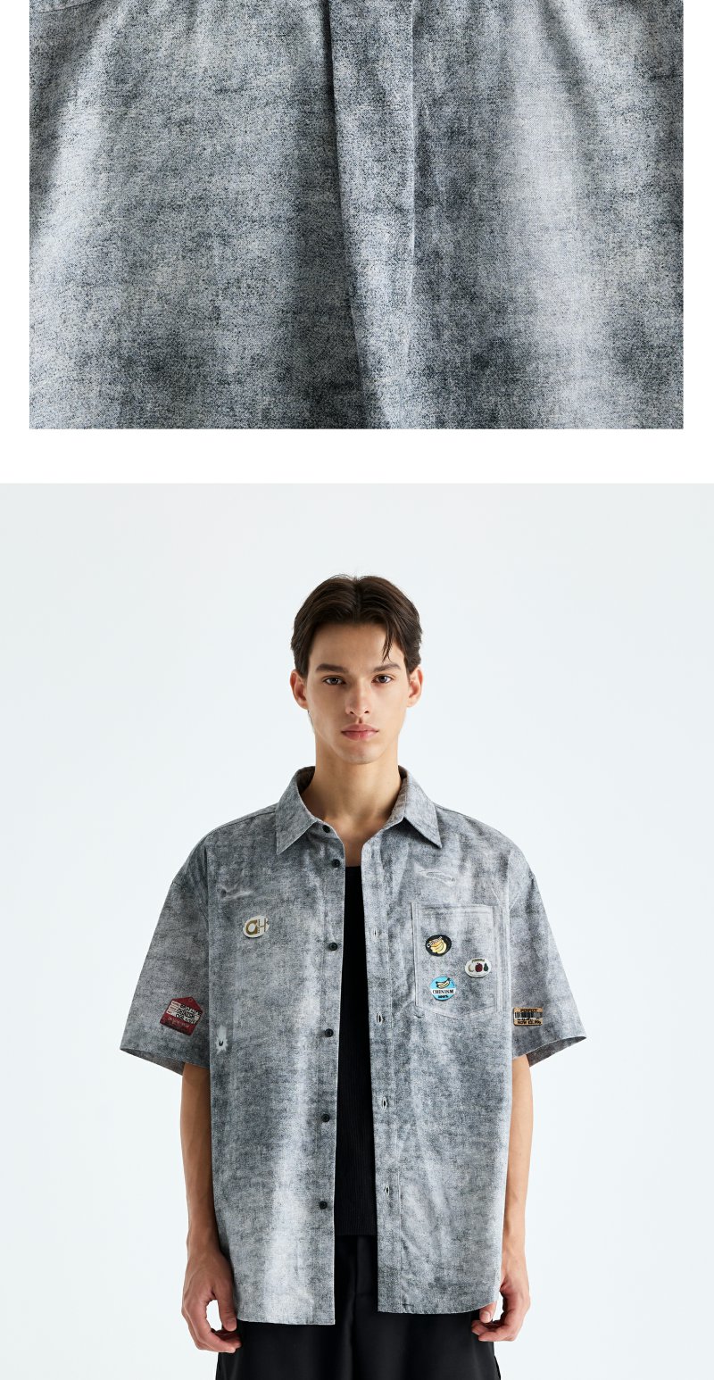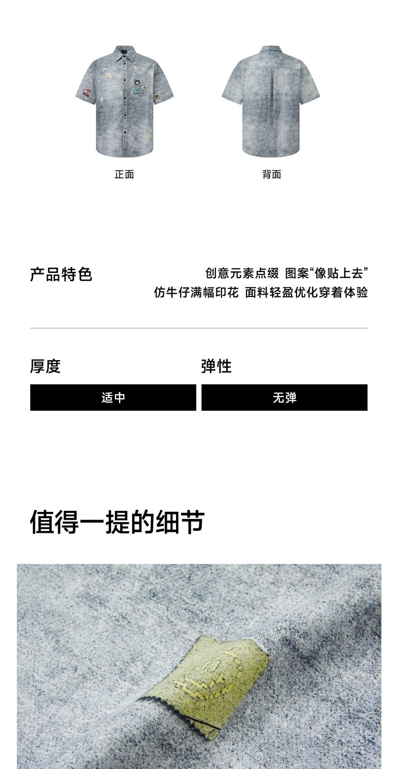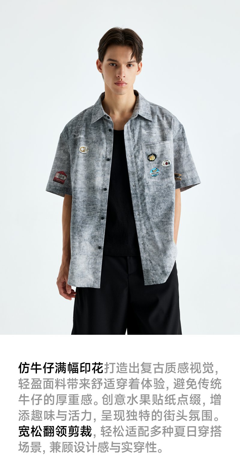 【商场同款】CHINISM赤尘 仿牛仔短袖衬衫男夏季美式男生休闲衬衣