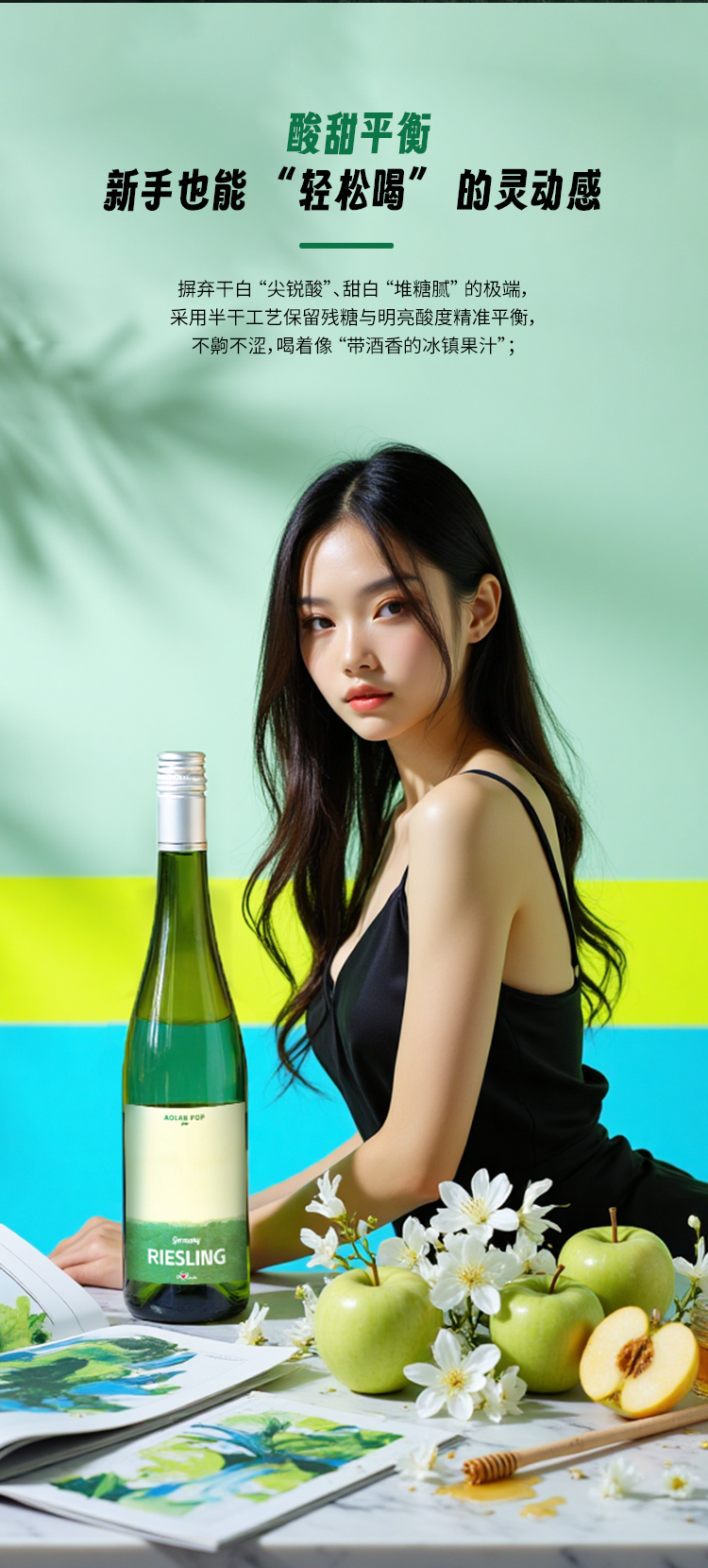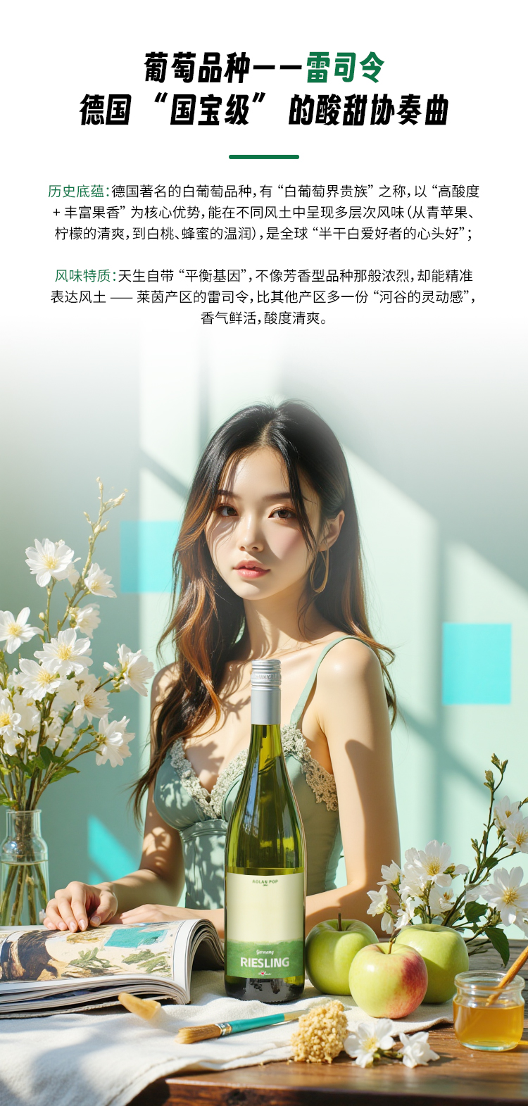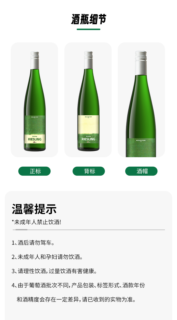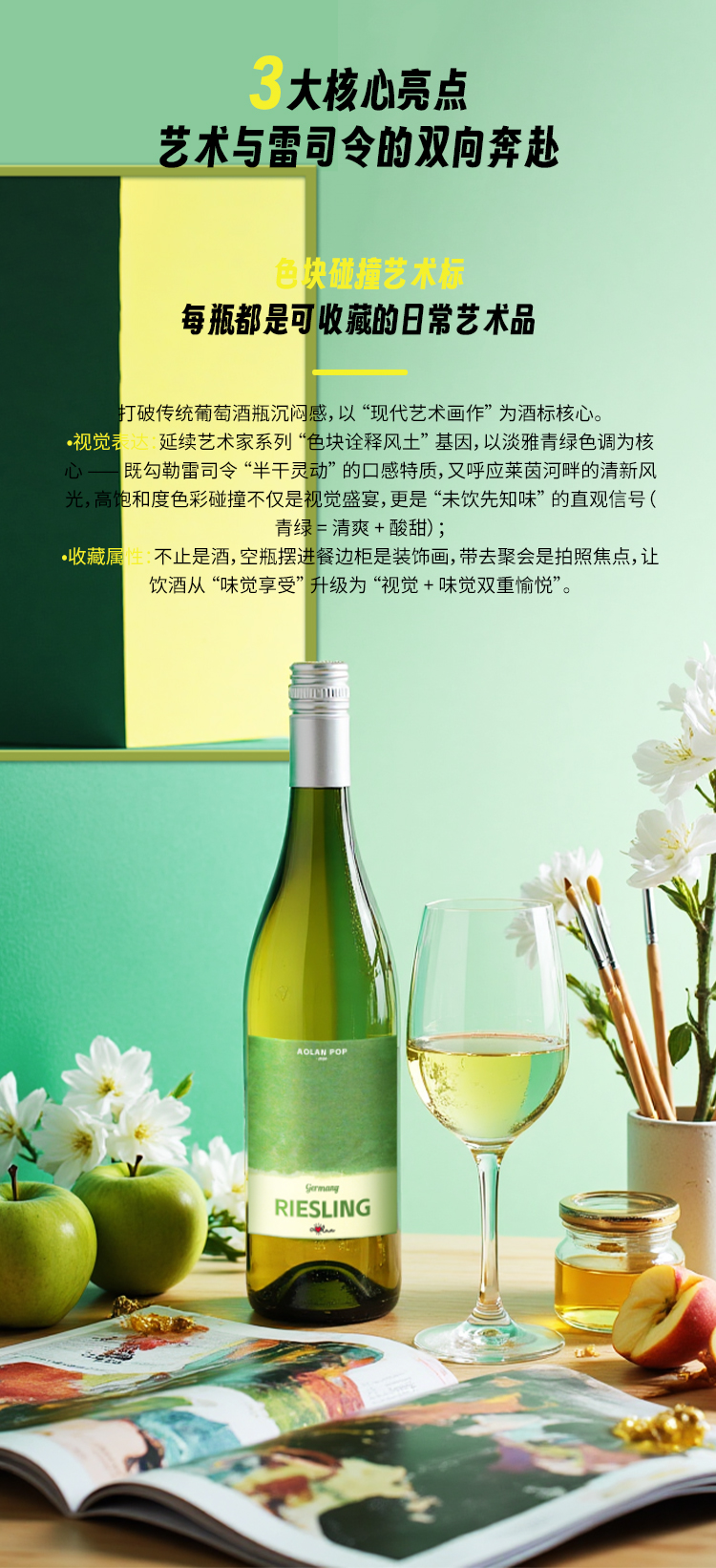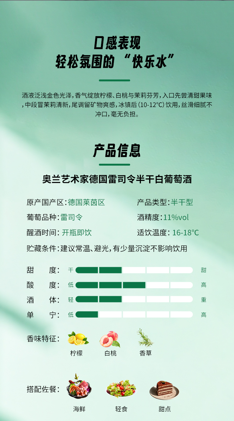 【新品】奥兰艺术家德国雷司令半干白葡萄酒11°750ml 德国莱茵产区原瓶进口 高端白葡萄酒