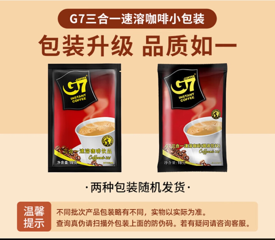 G7中原三合一速溶咖啡800g(16克×50包) 越南进口 100122368604