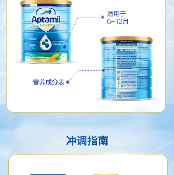 【保税仓】3罐装 Aptamil 爱他美 金装二段 奶粉 900g)(002837)