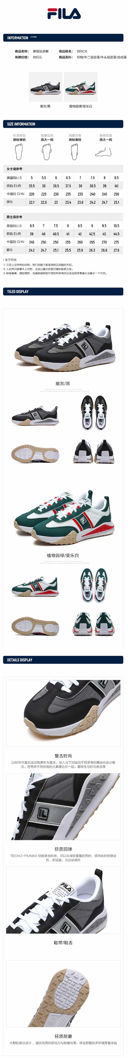 FILA老爹鞋男2022春季新款休闲鞋复古运动鞋BRICK积木鞋F12M211119F