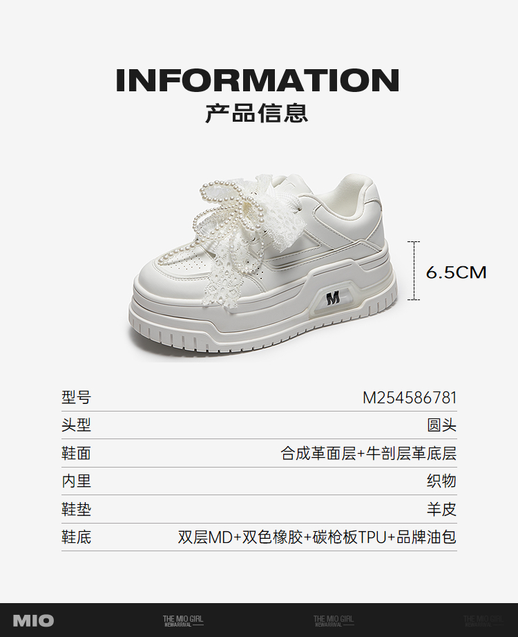 MIO米奥休闲板鞋厚底增高纯色运动小白鞋女休闲鞋M254586781