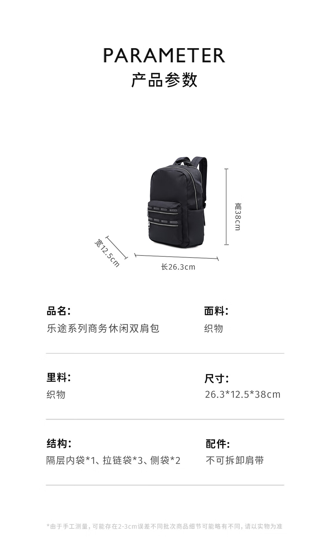 梦特娇中性新款织物布材质大容量书包通勤双肩包时尚背囊旅行背包