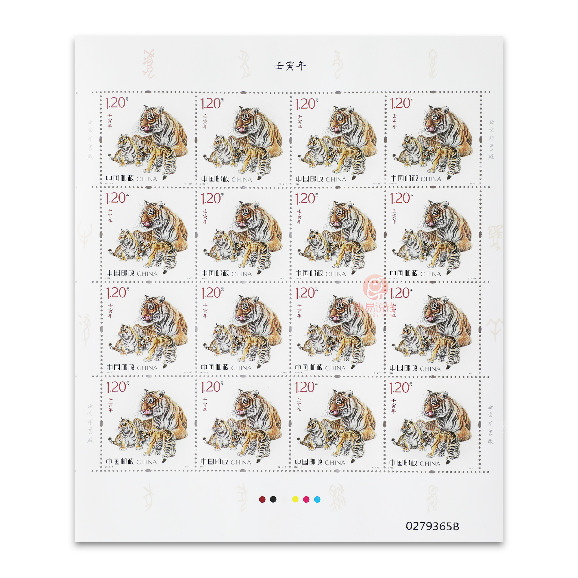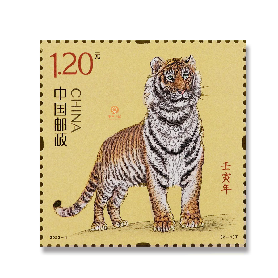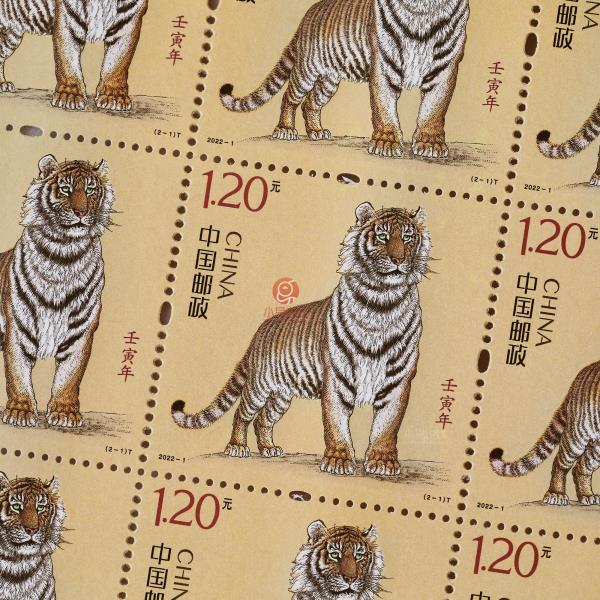 2022虎年邮票由中国邮政发行,一套两枚,每枚面值1.2元。