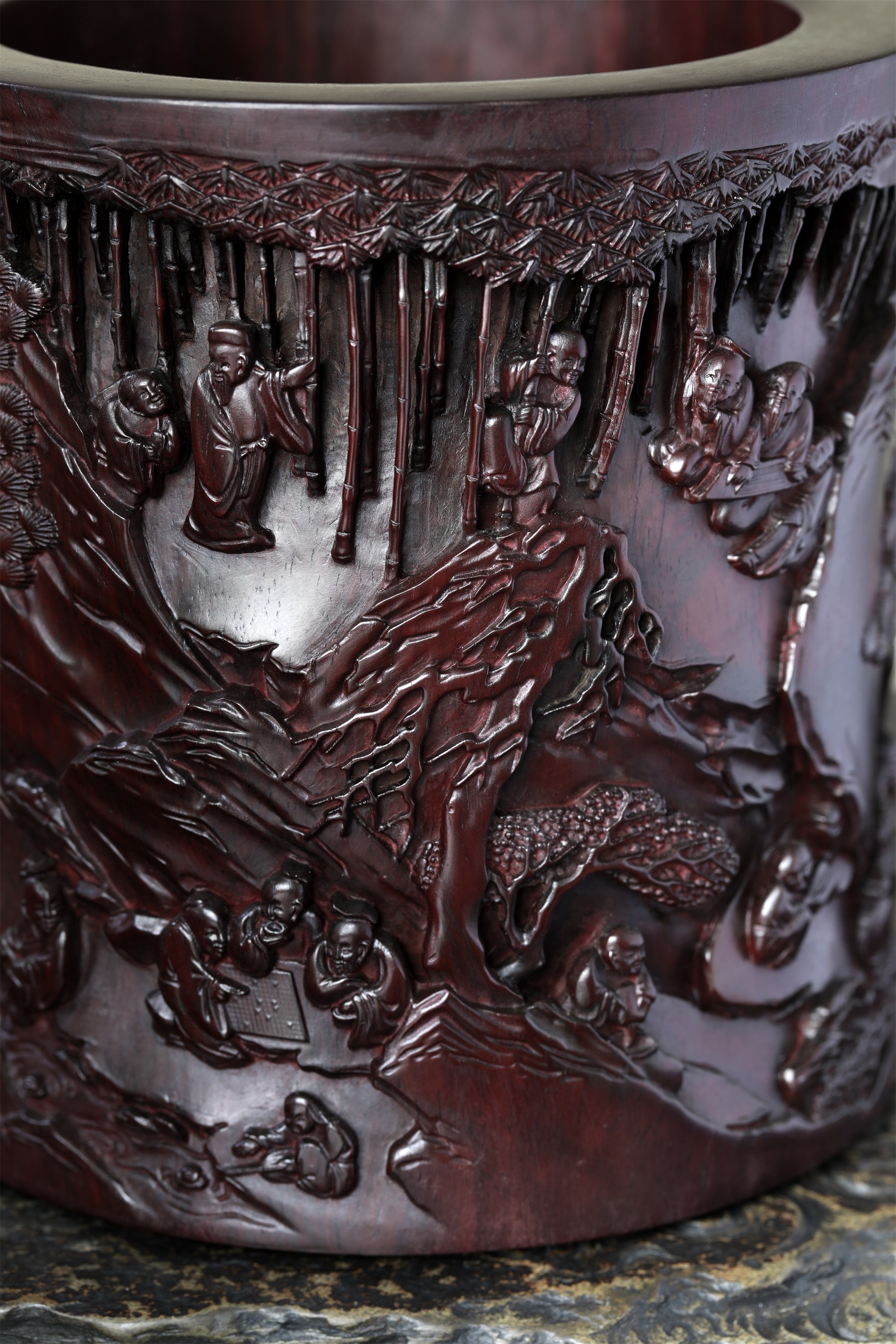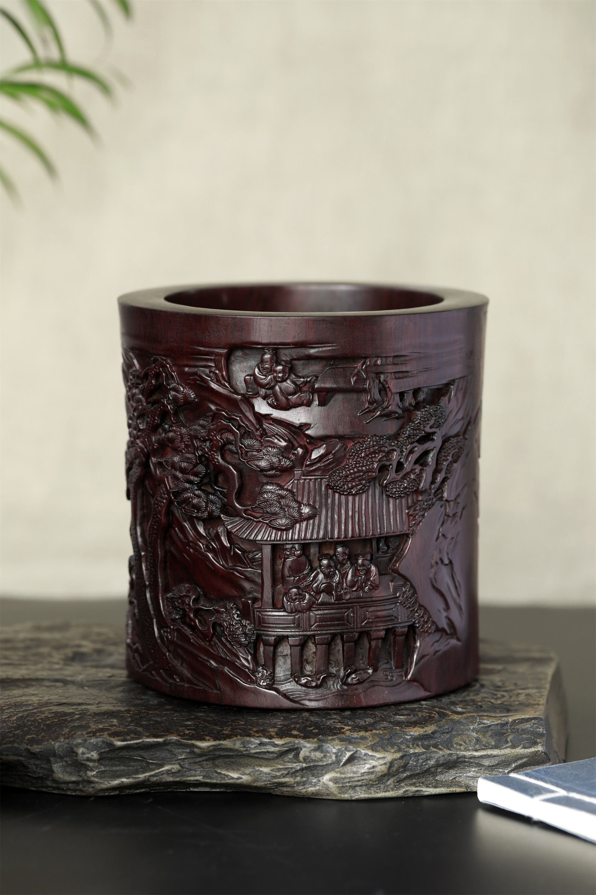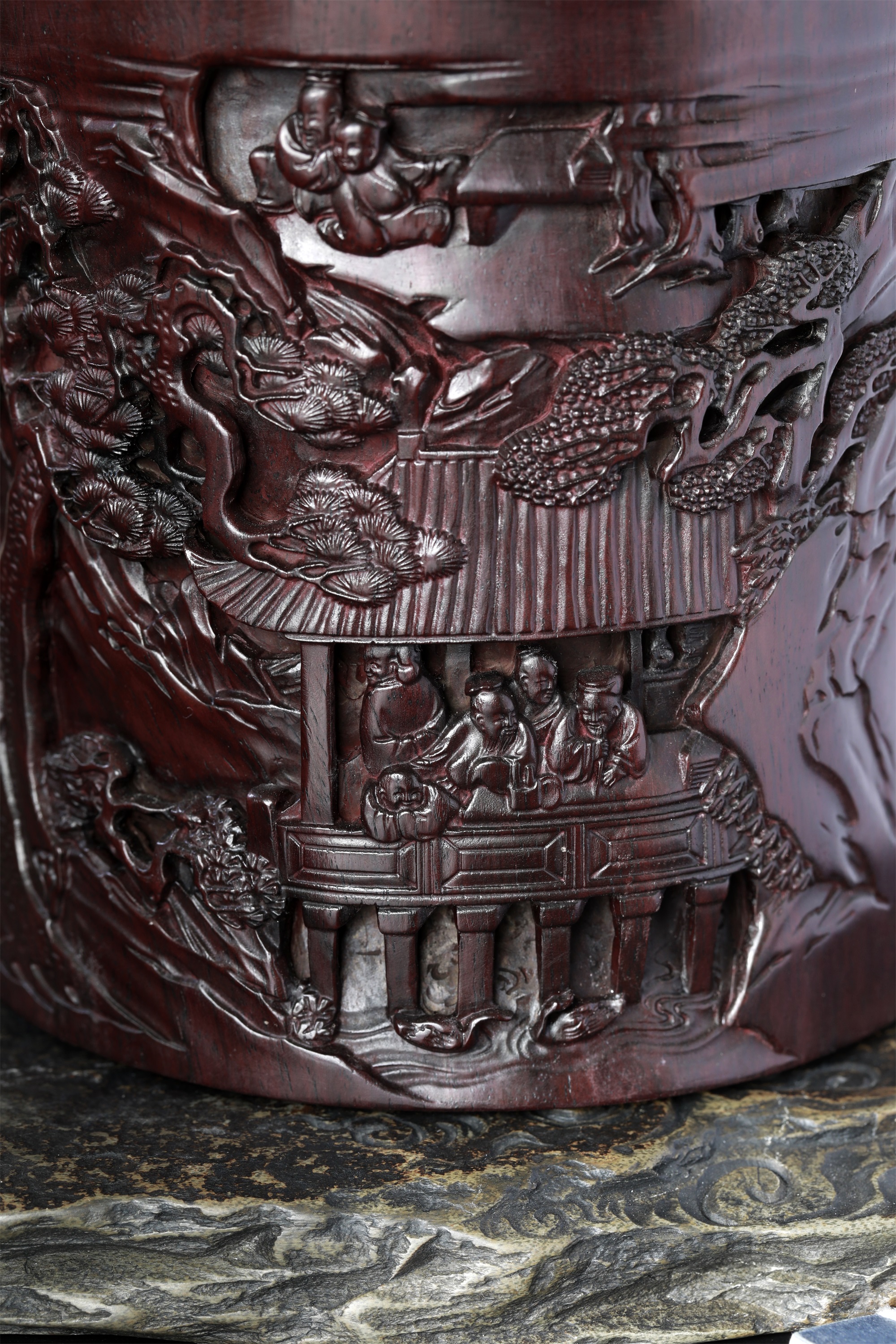 名称:兰亭雅集°木雕笔筒