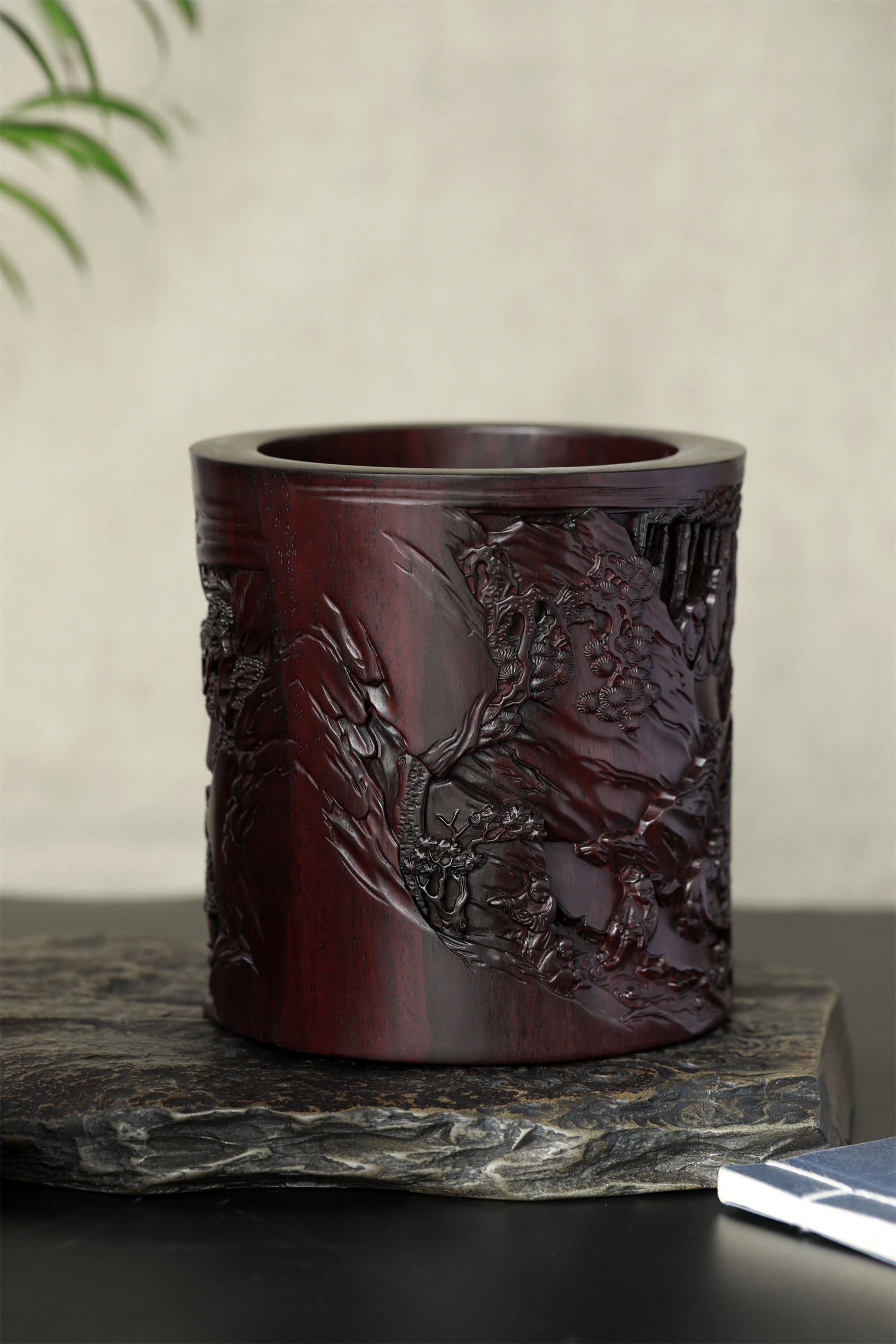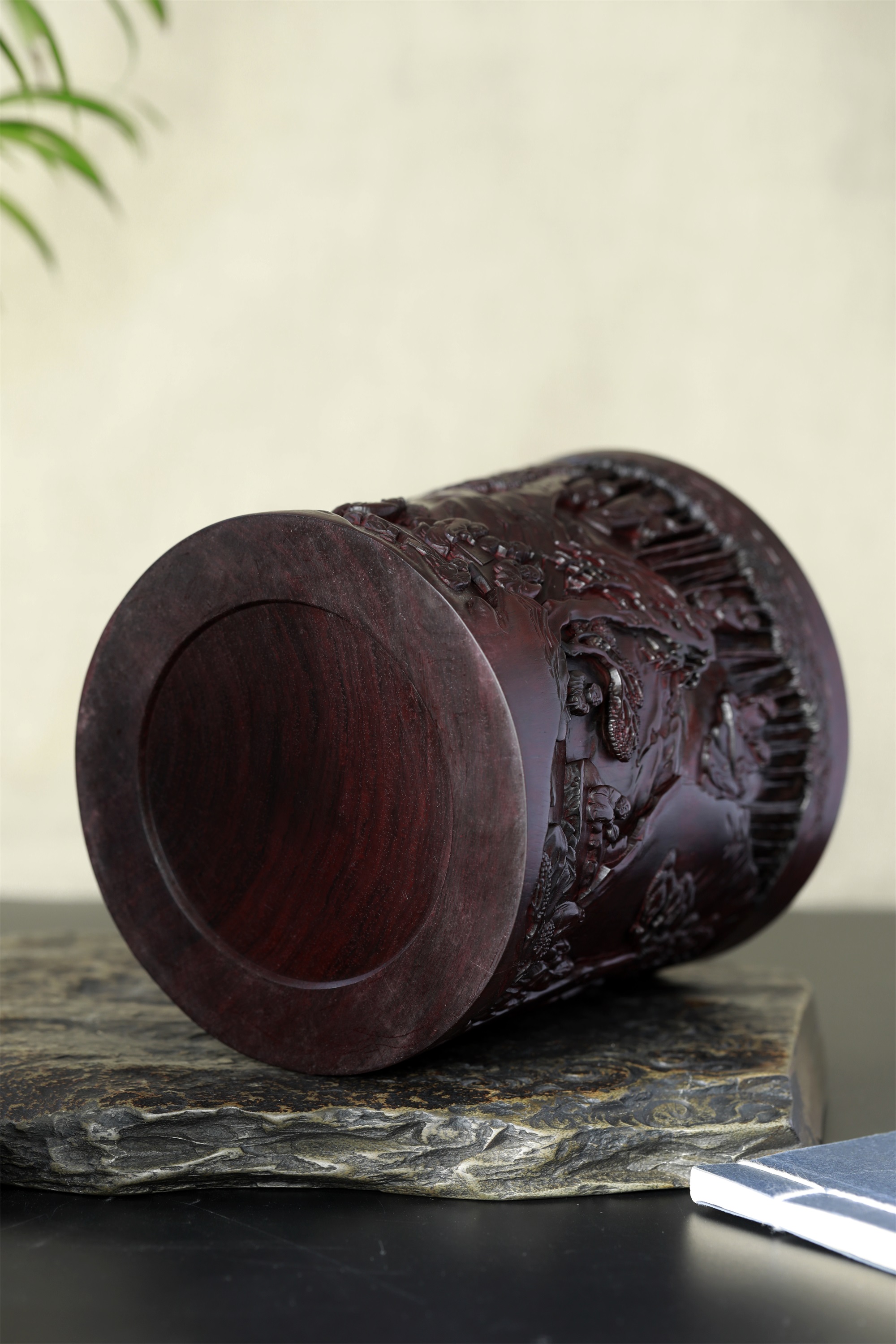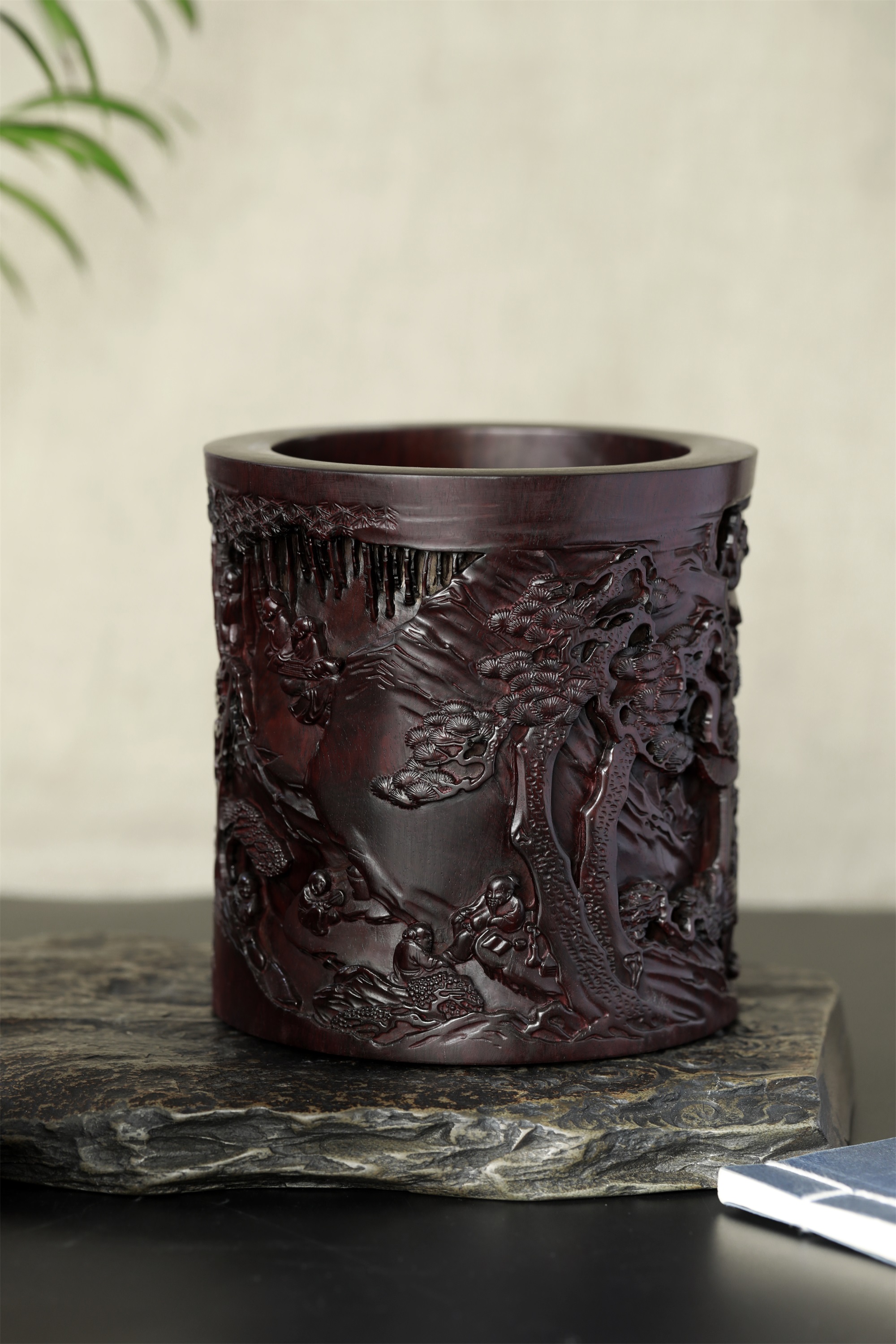 名称:兰亭雅集°木雕笔筒