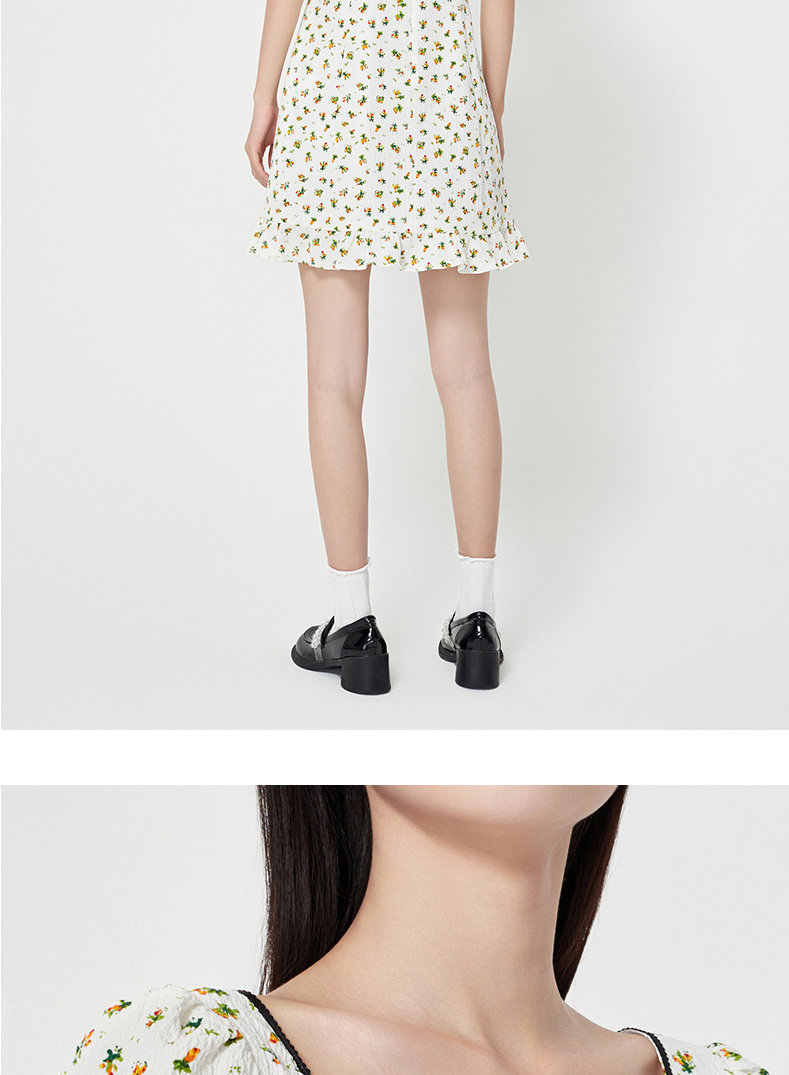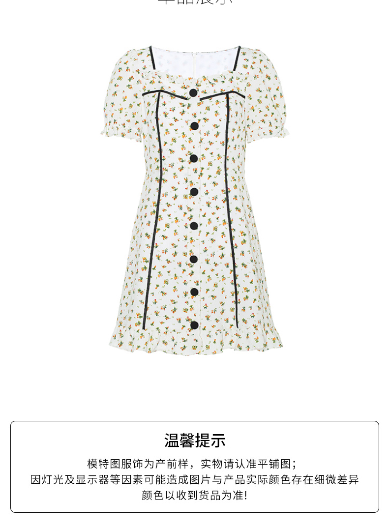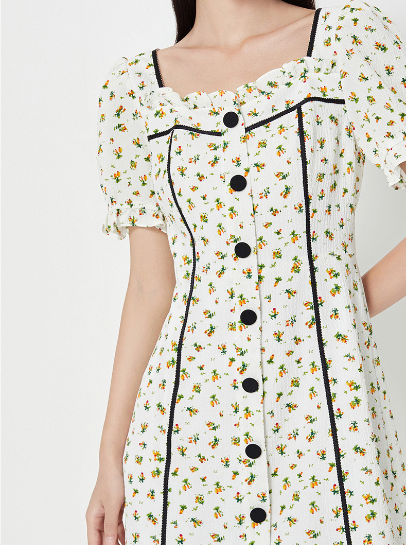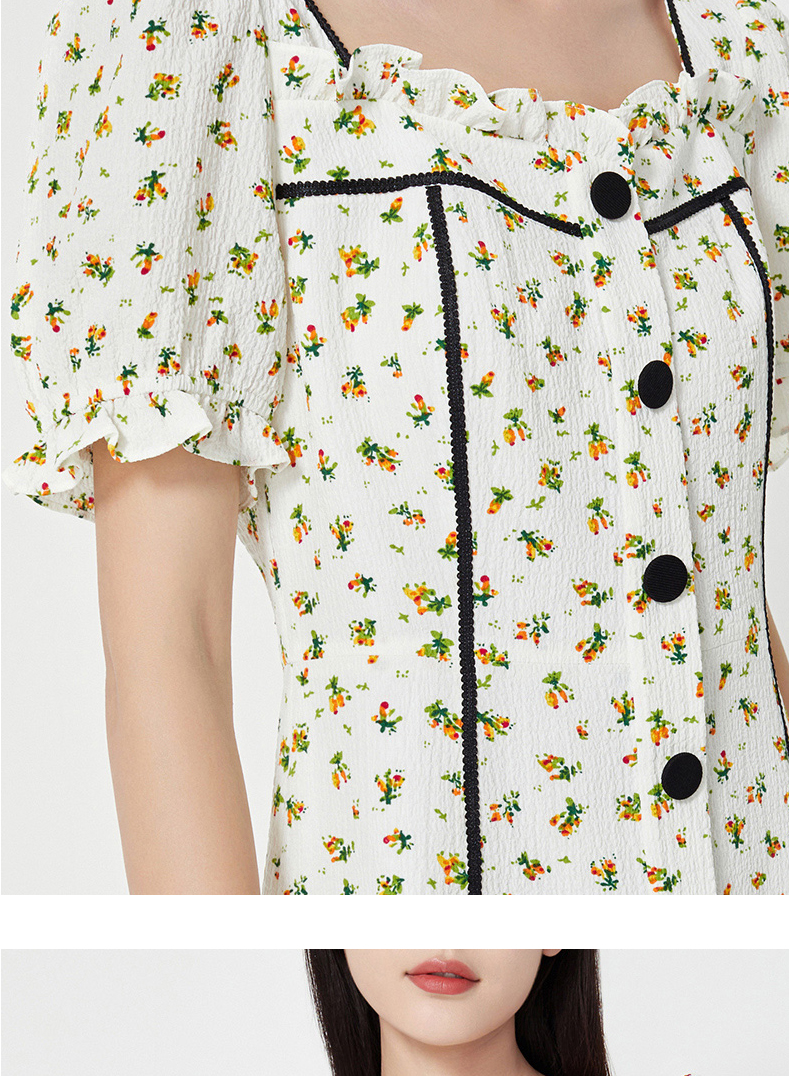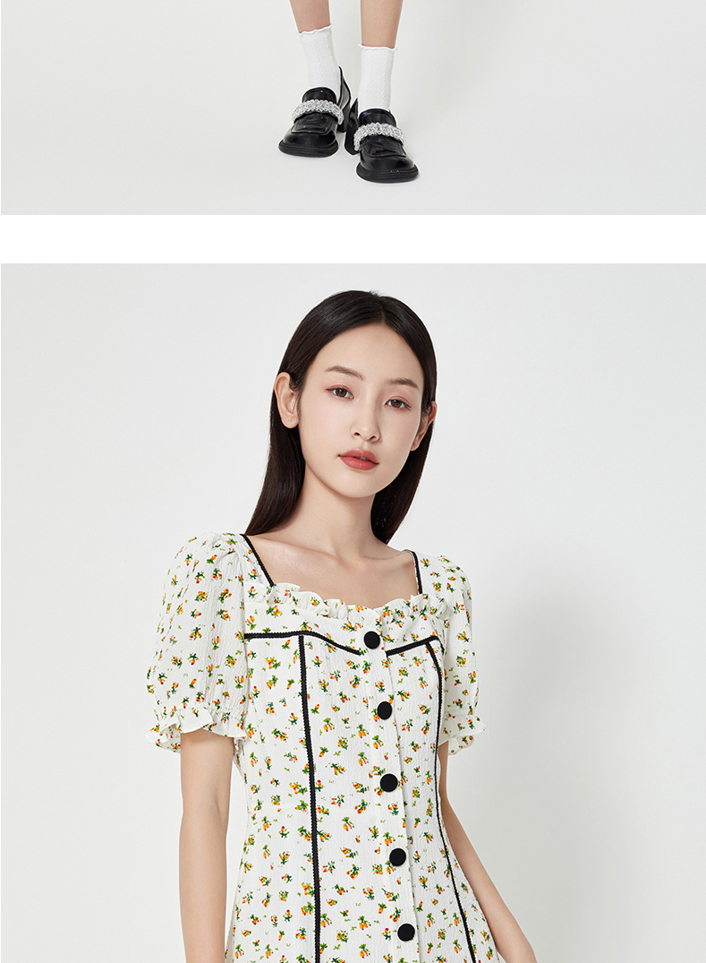FIVE PLUS2022新款女夏装小清新碎花连衣裙泡泡袖荷叶边法式裙子2WA2080510