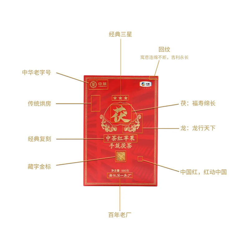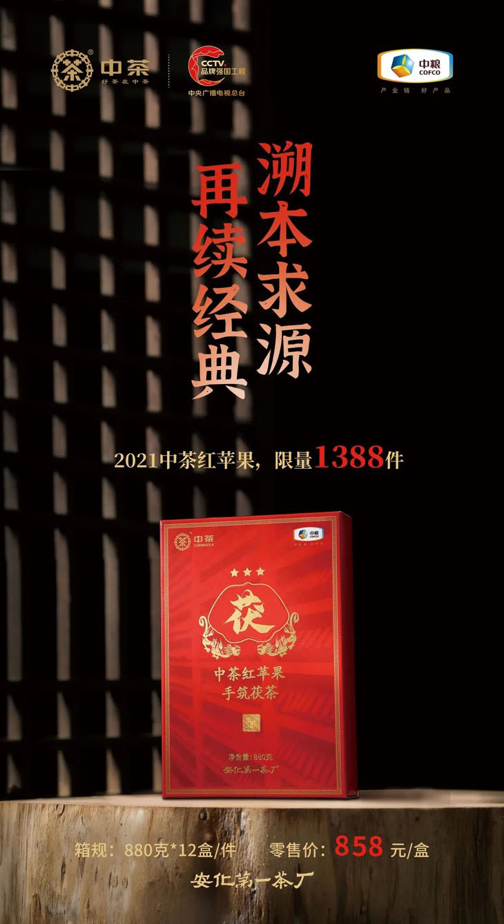 中粮-中茶(限量款)红苹果手筑茯茶金花茯砖茶版880克/盒/原产地直发