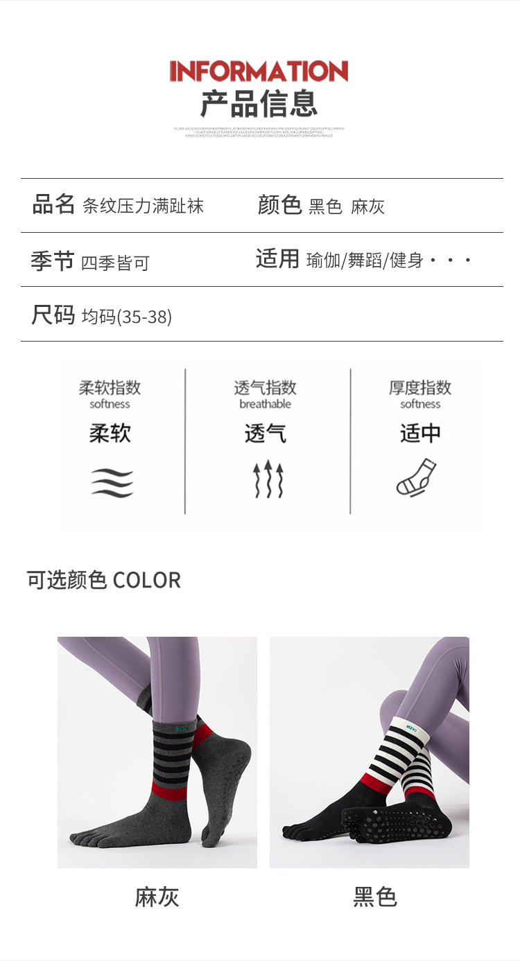 一恋普拉提2026新款条纹压力满趾袜EYG24013