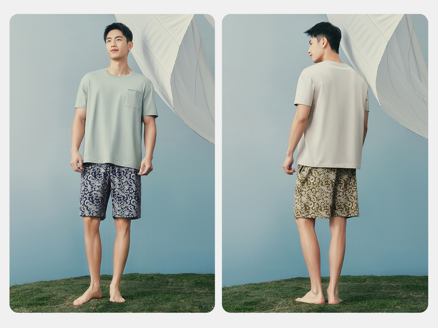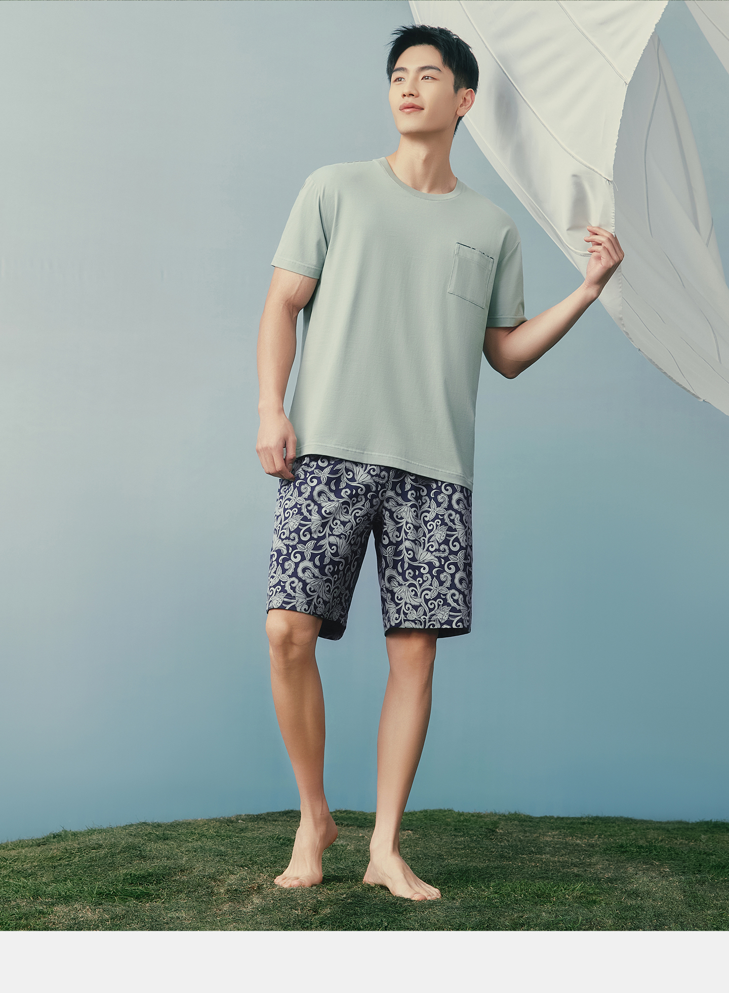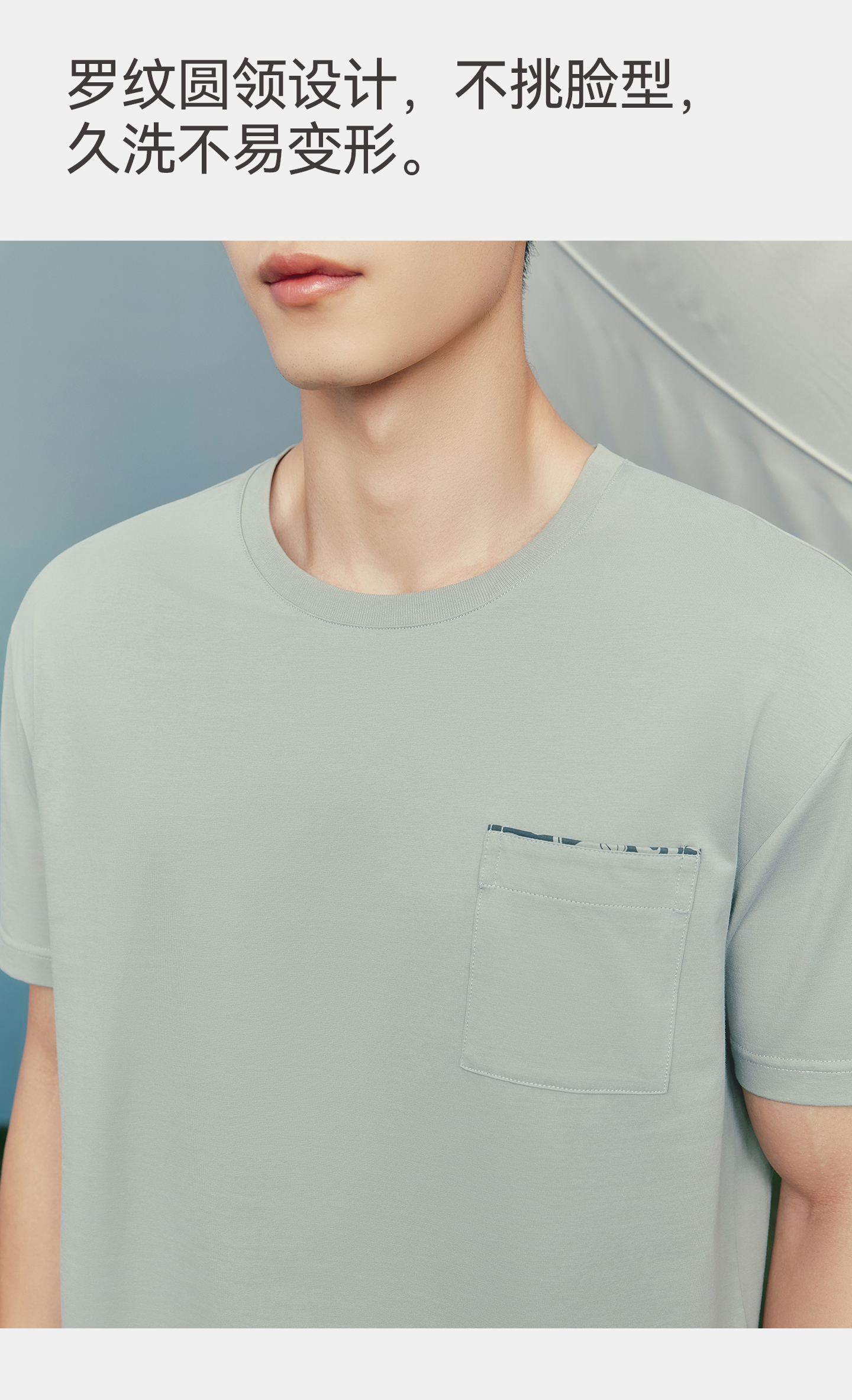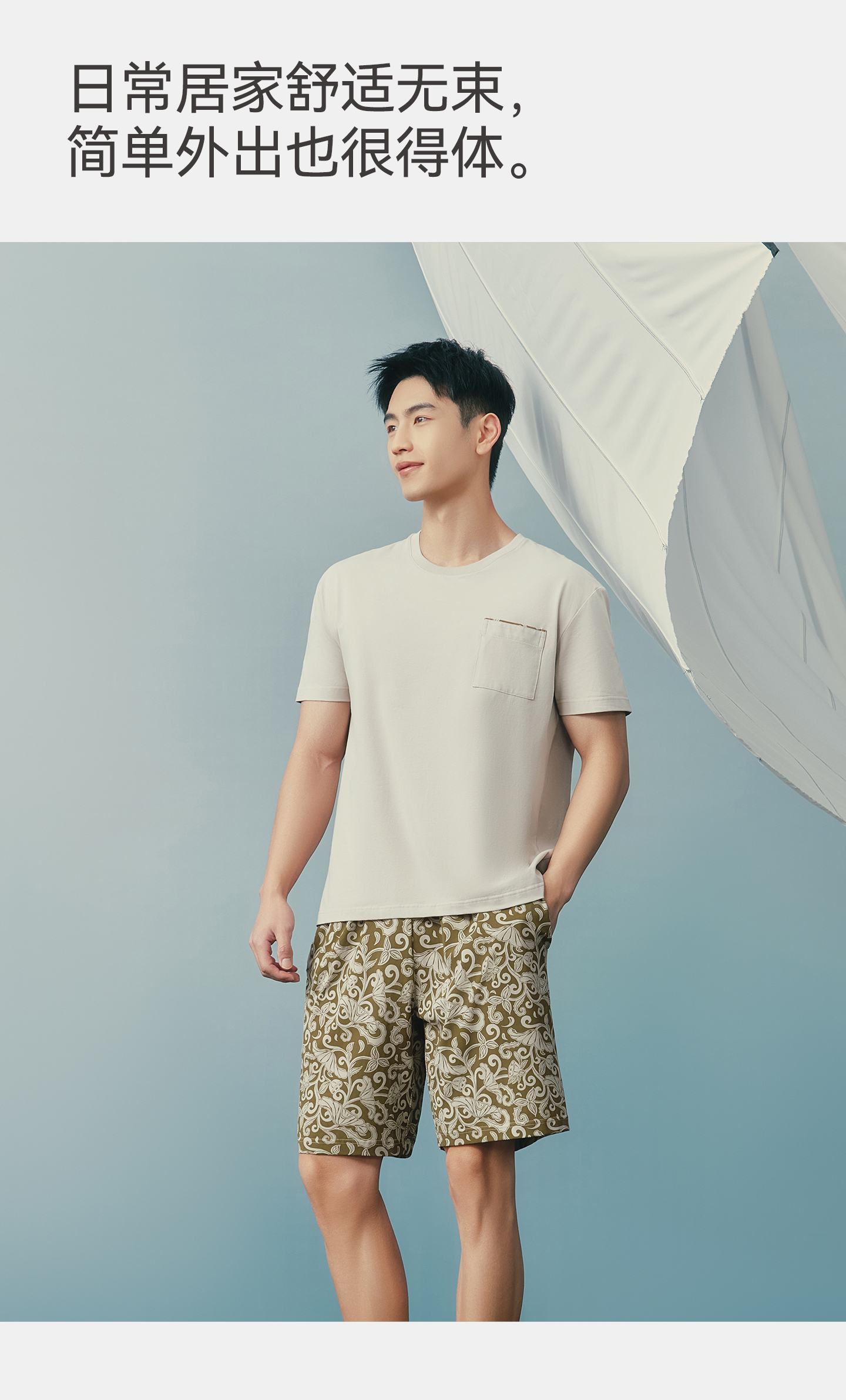 Threegun三枪 冰泉棉圆领短袖短裤男家居套-T80144D02