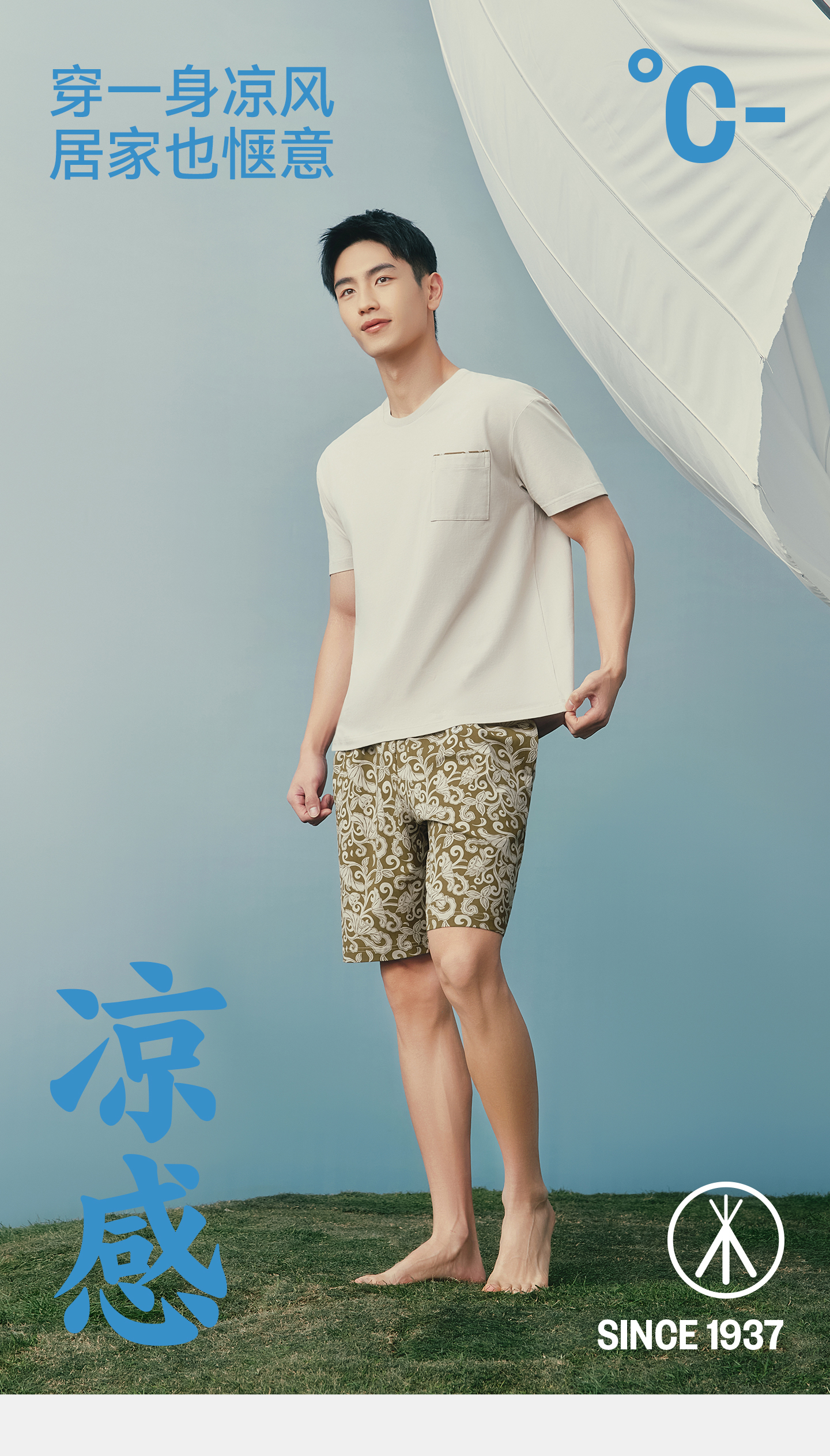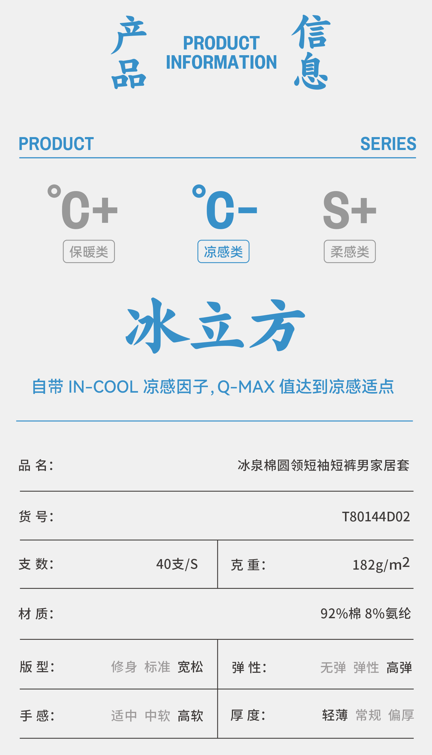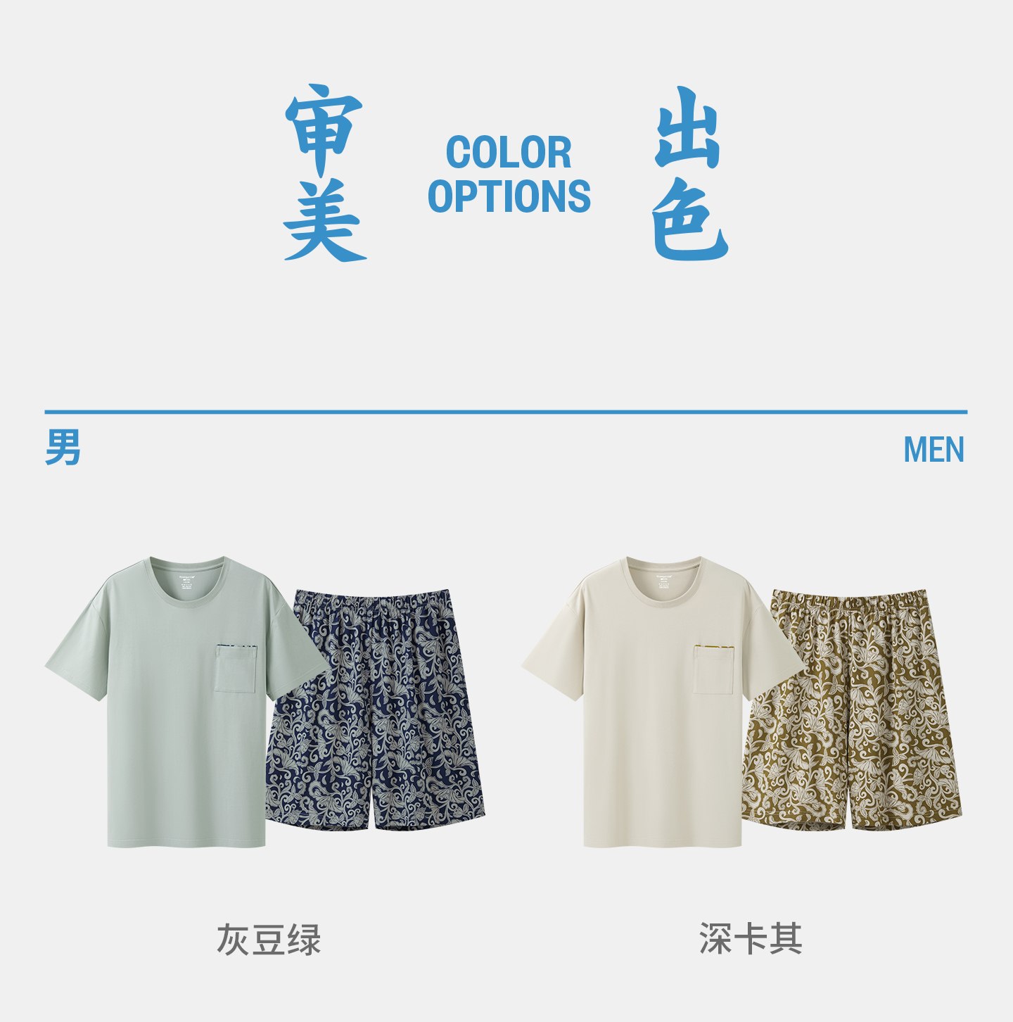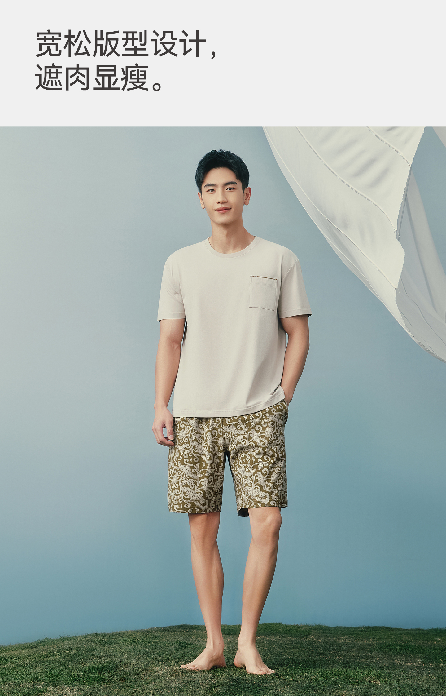 Threegun三枪 冰泉棉圆领短袖短裤男家居套-T80144D02
