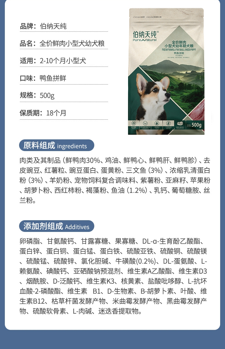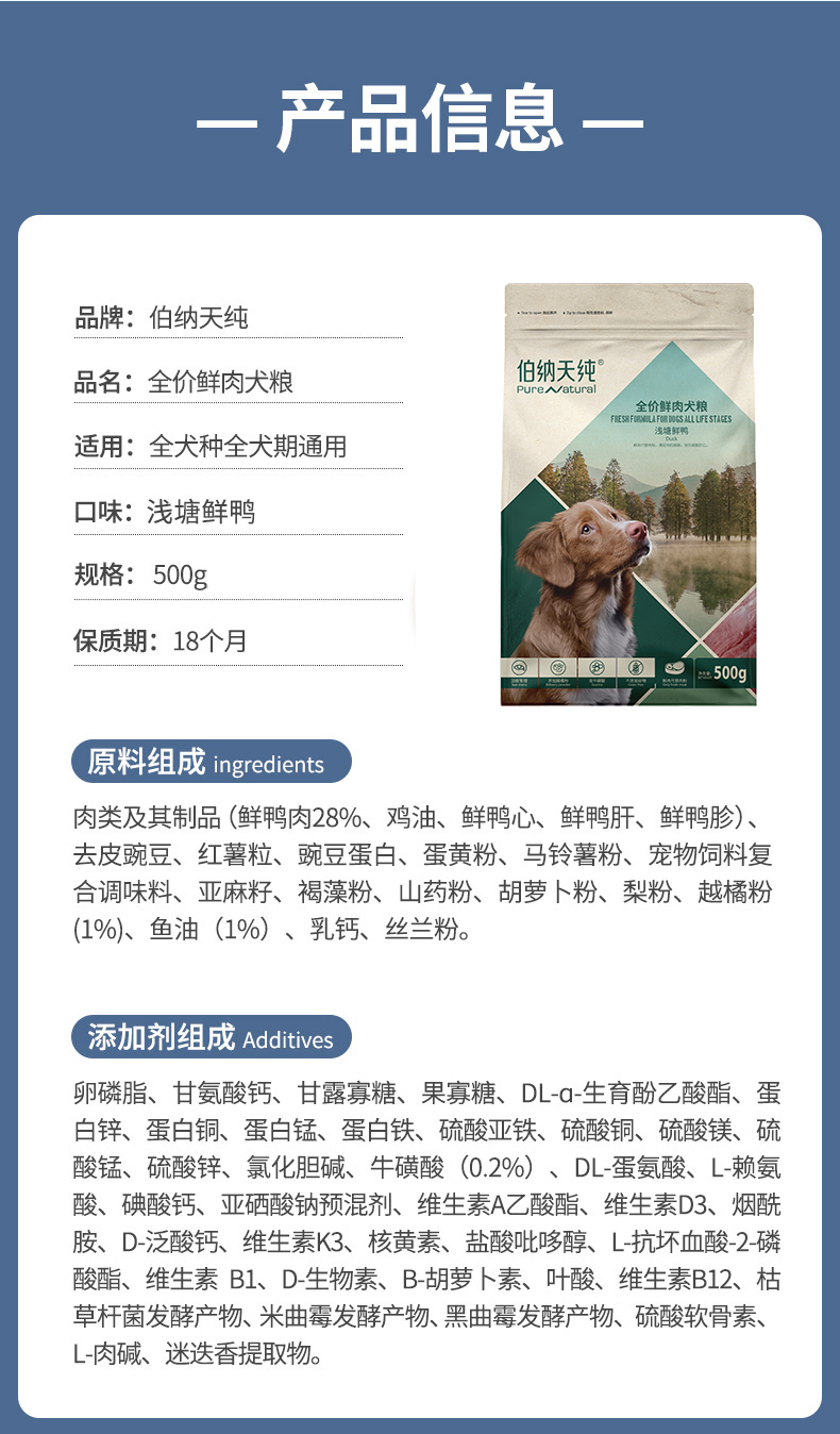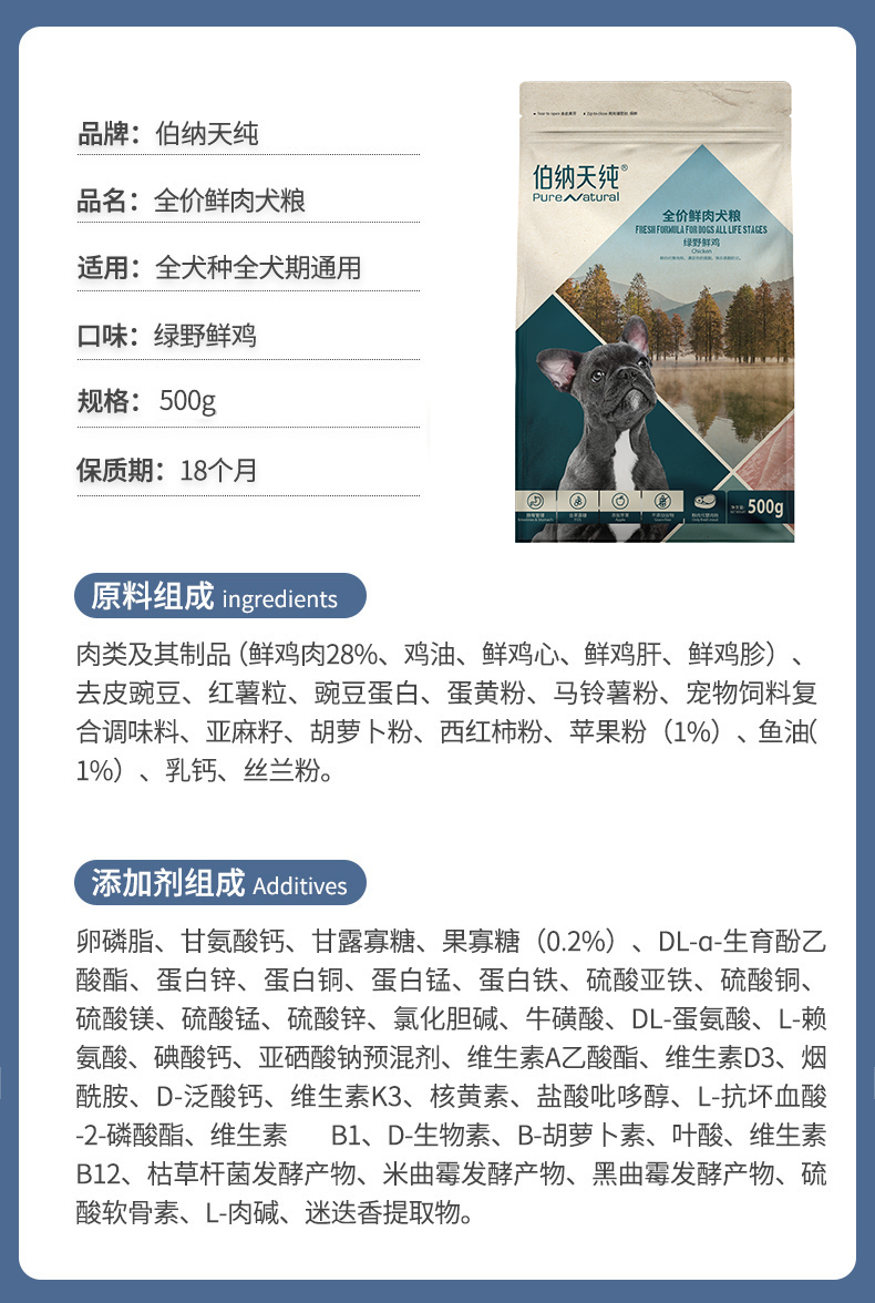 【鲜肉系列】伯纳天纯鲜肉全价犬粮 500g