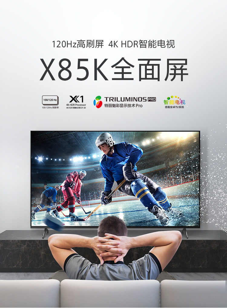 索尼(SONY)KD-85X85K 85英寸 4K HDR 全面屏智能电视 广色域 120Hz 客厅巨幕 (X85J升级款)