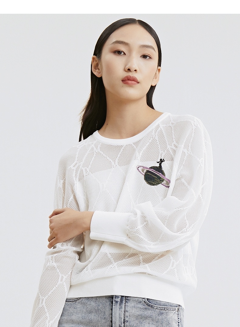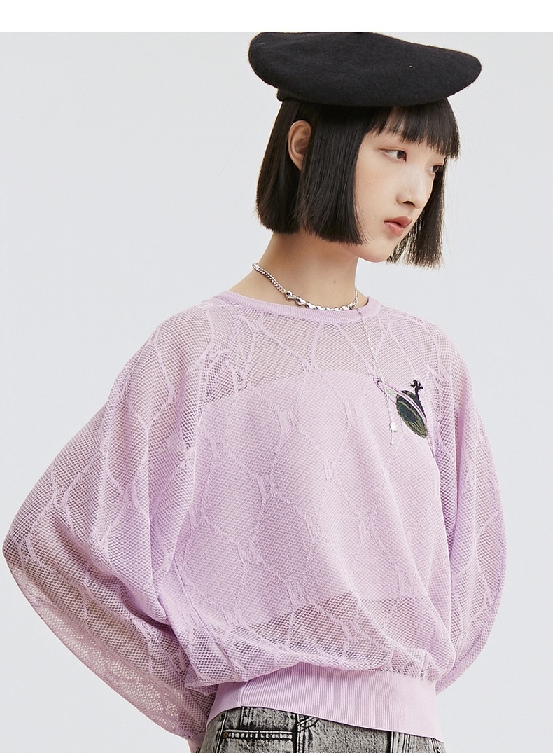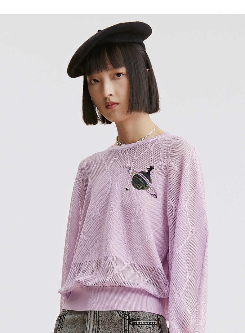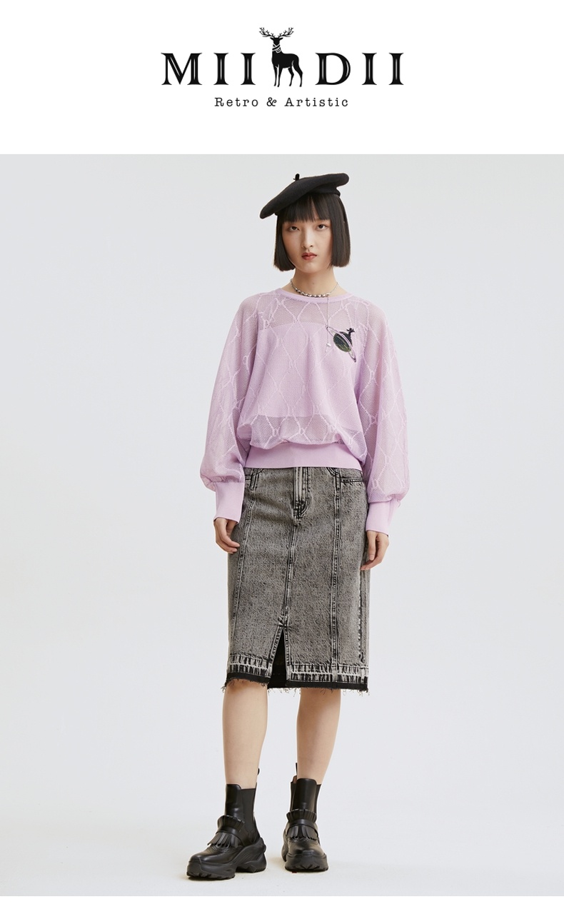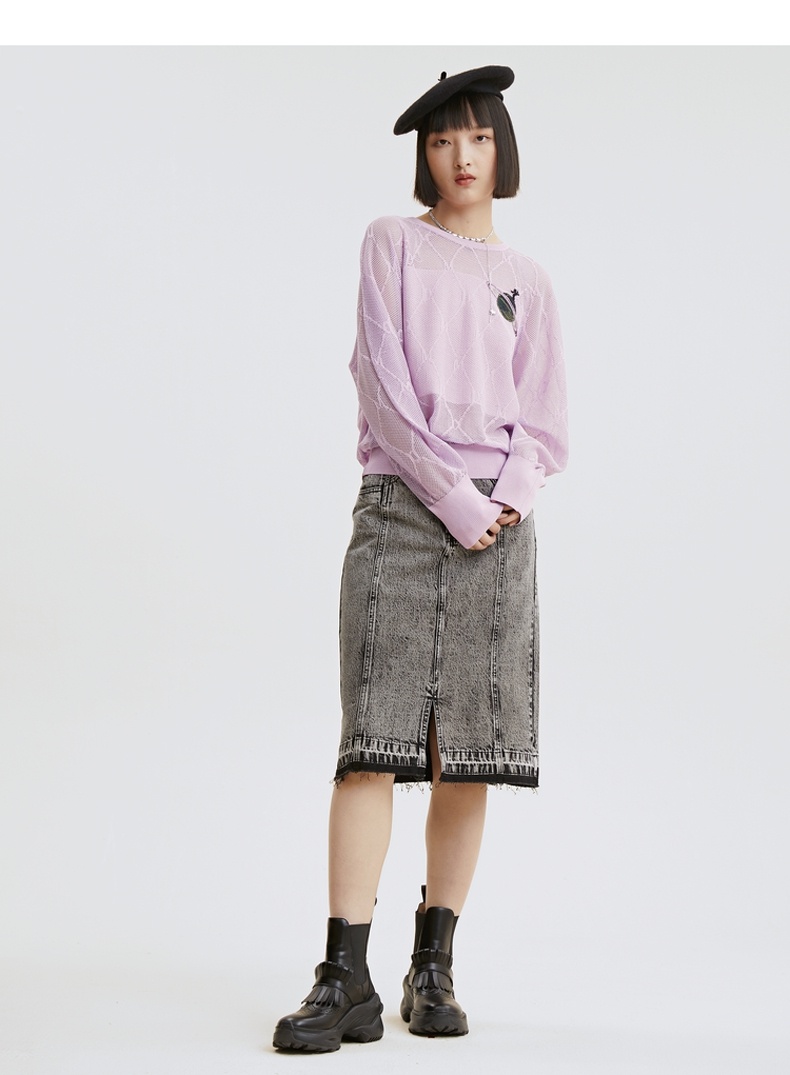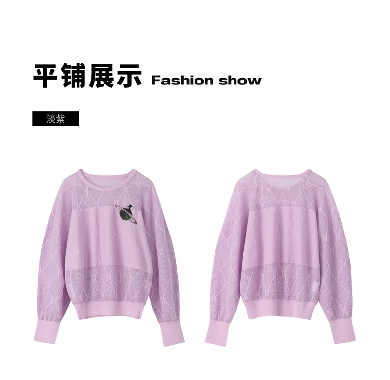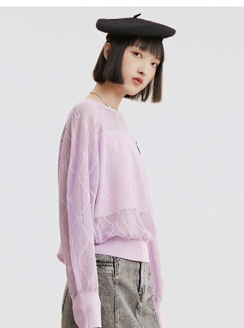 谜底长袖针织衫2021秋季新款菱形格织花圆领套头衫女213MZ2017