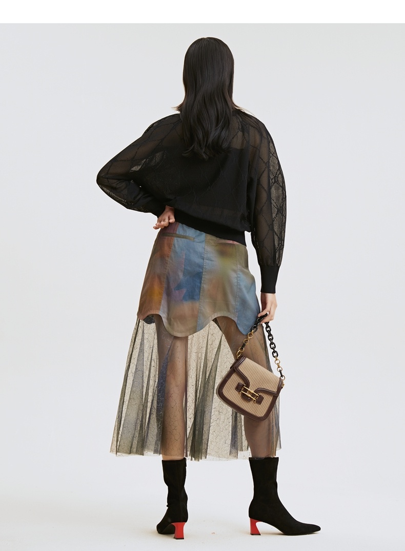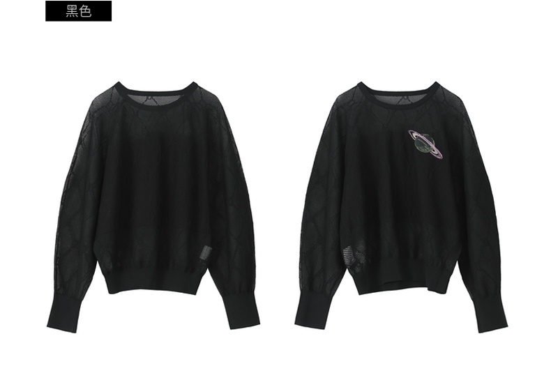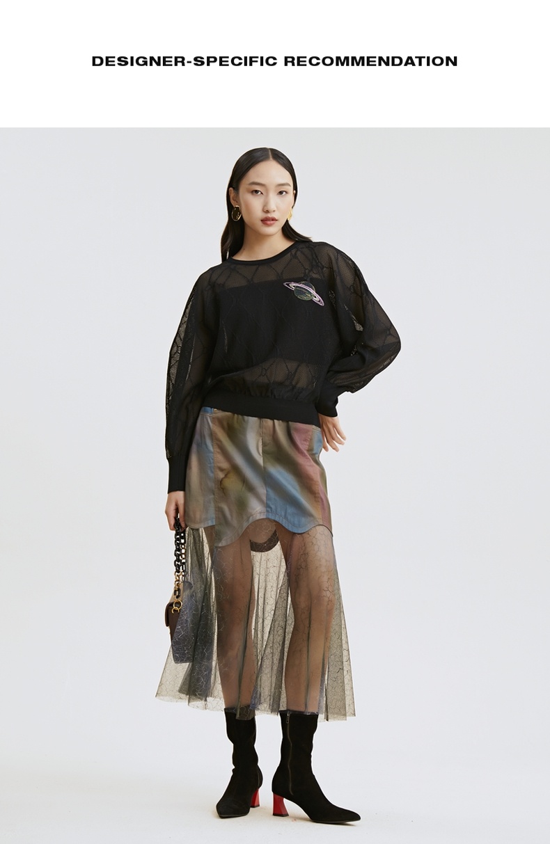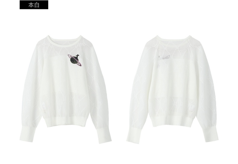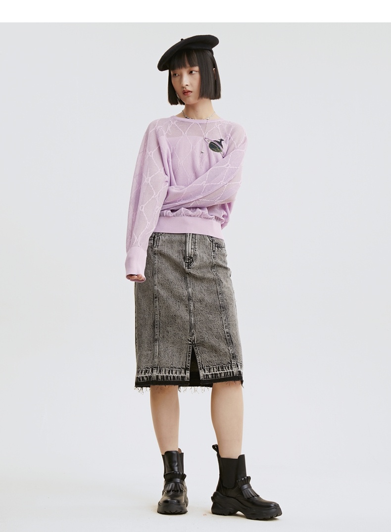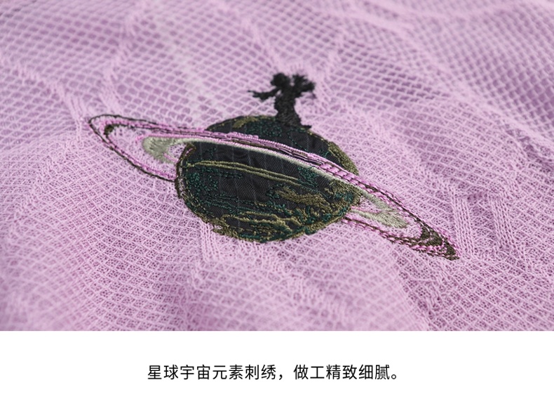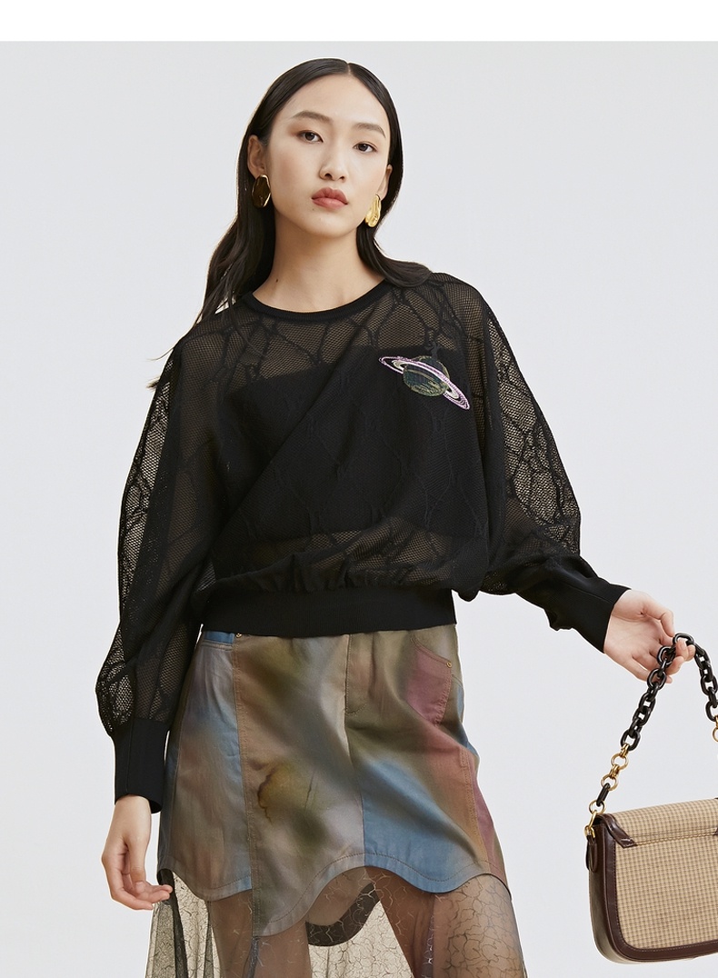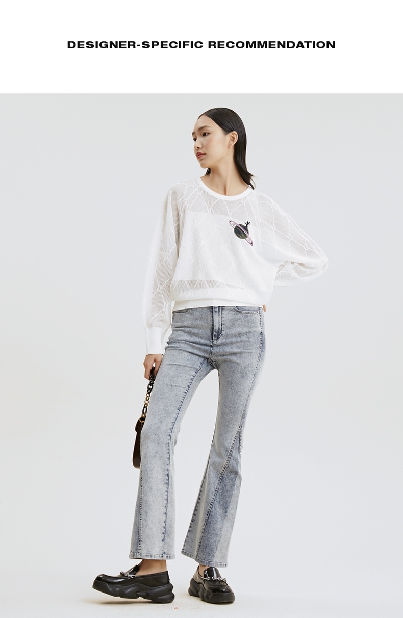 谜底长袖针织衫2021秋季新款菱形格织花圆领套头衫女213MZ2017