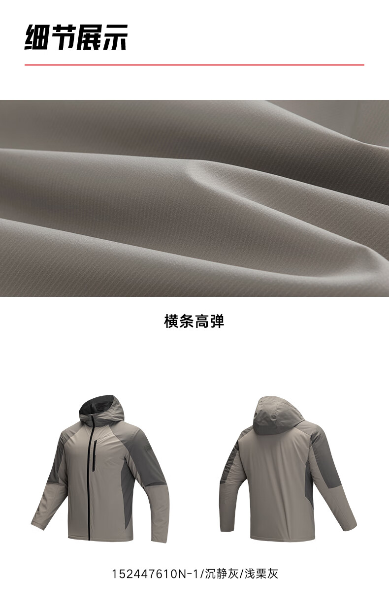 安踏防泼水外套丨运动外套男冬季新款风衣连帽夹克上衣152447610N