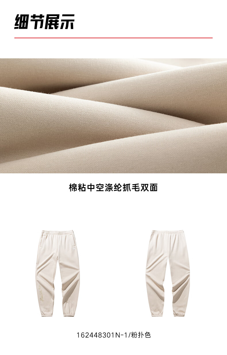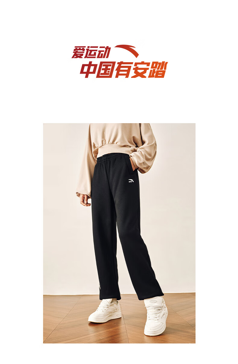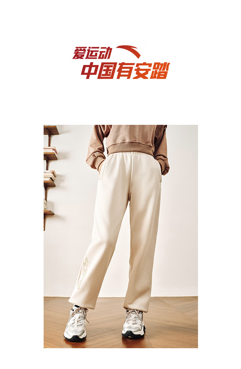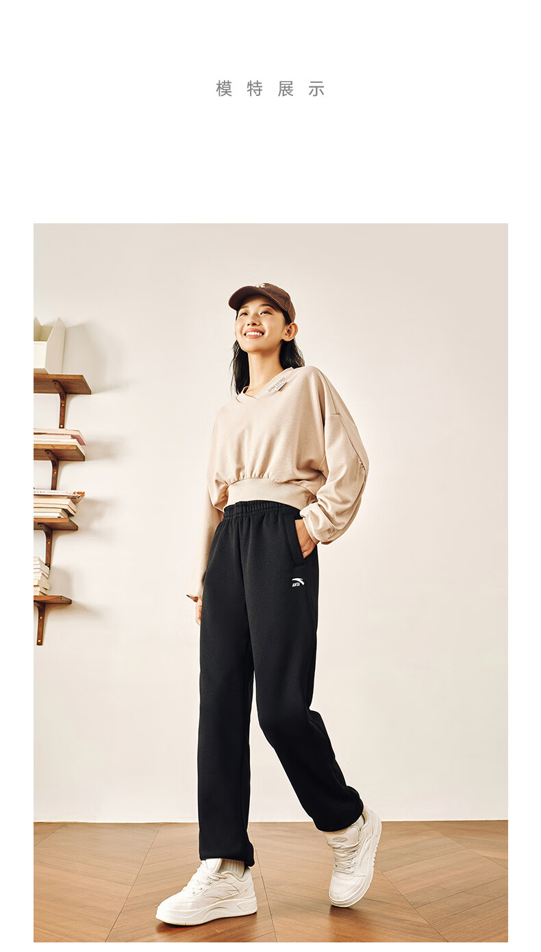 安踏加绒卫裤 女冬季新款束脚运动裤舒适百搭休闲长裤子162448301N