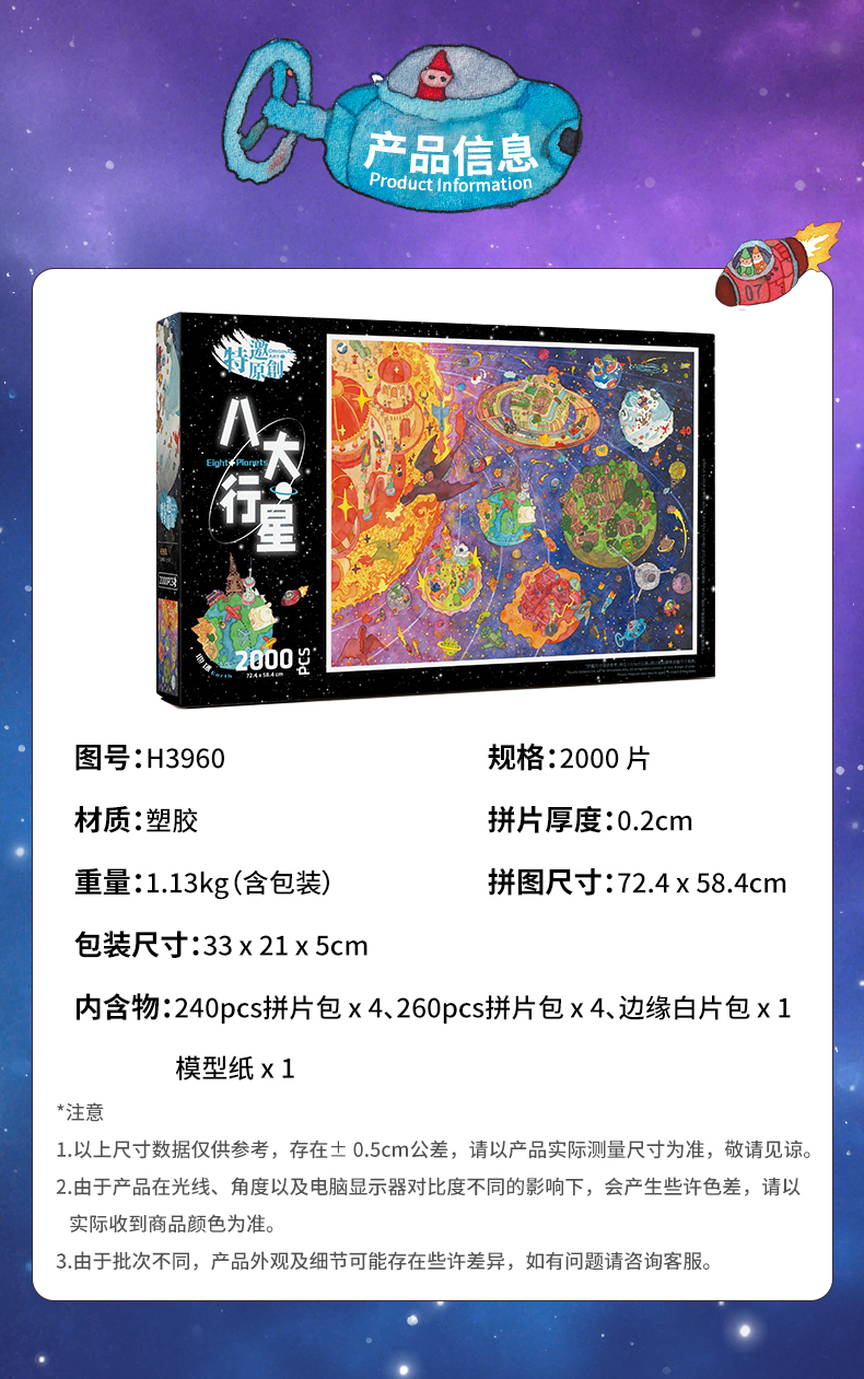 2000片 平面塑料拼图 H3960 尖角帽-八大行星