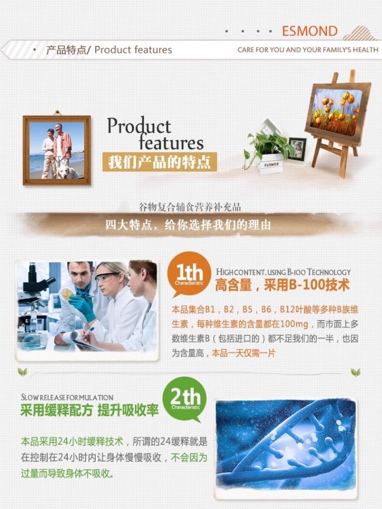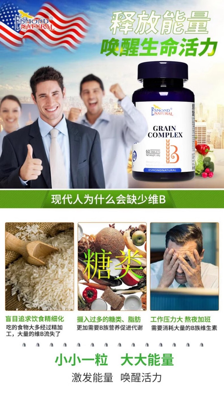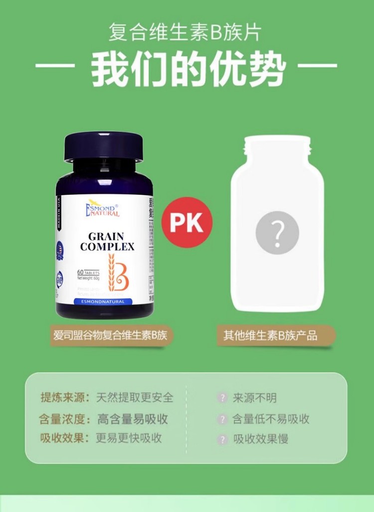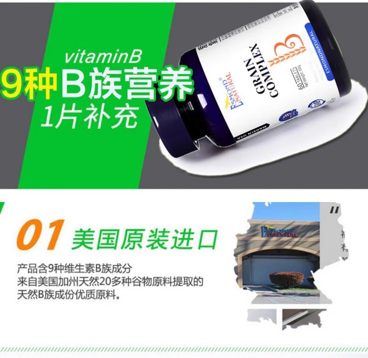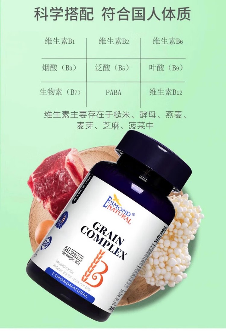 ESMOND 爱司盟 谷物天然提取维生素B族b6复合片 60片/瓶