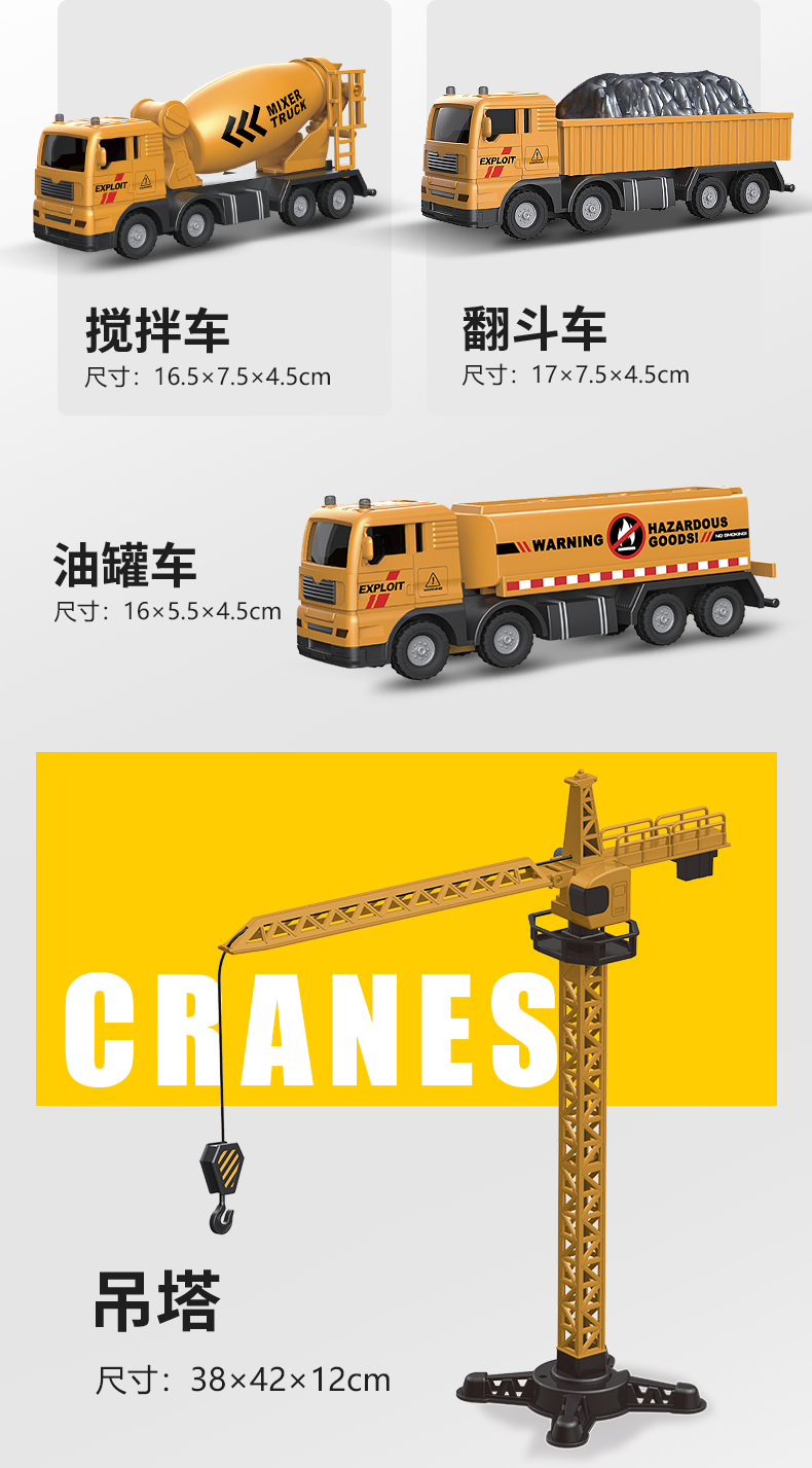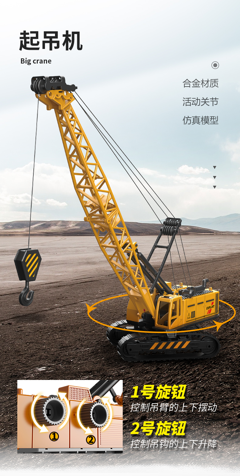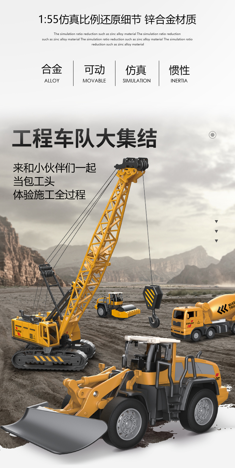 【下单赠地图】合金工程队来啦 可拼搭N款主题车 1:55仿真比例 还原细节 吊塔/挖掘机/起吊机 可一键操控 礼盒装