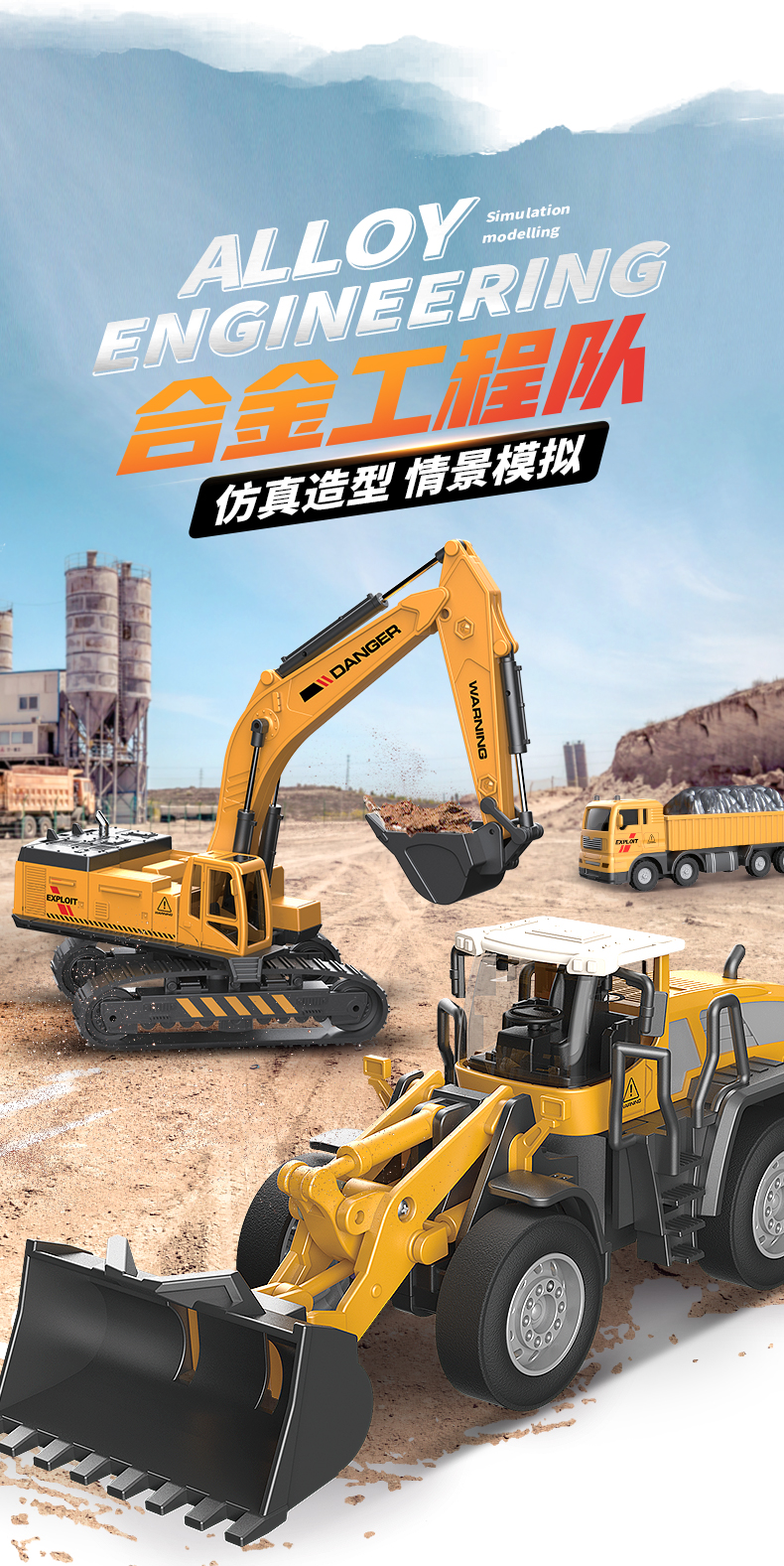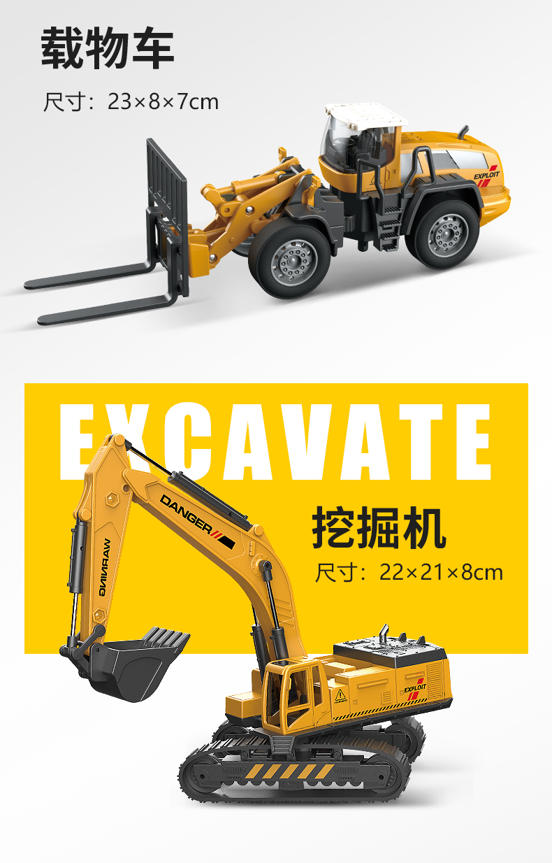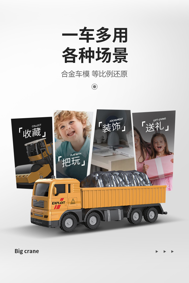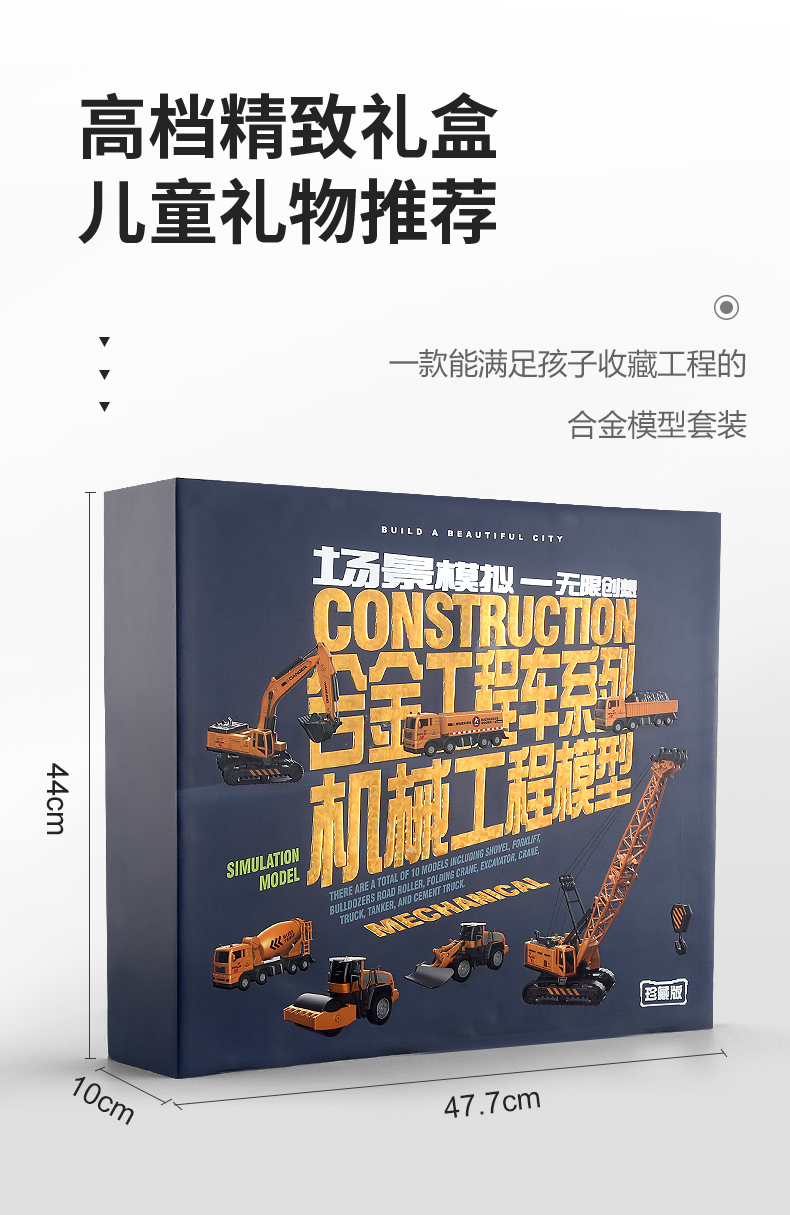 【下单赠地图】合金工程队来啦 可拼搭N款主题车 1:55仿真比例 还原细节 吊塔/挖掘机/起吊机 可一键操控 礼盒装