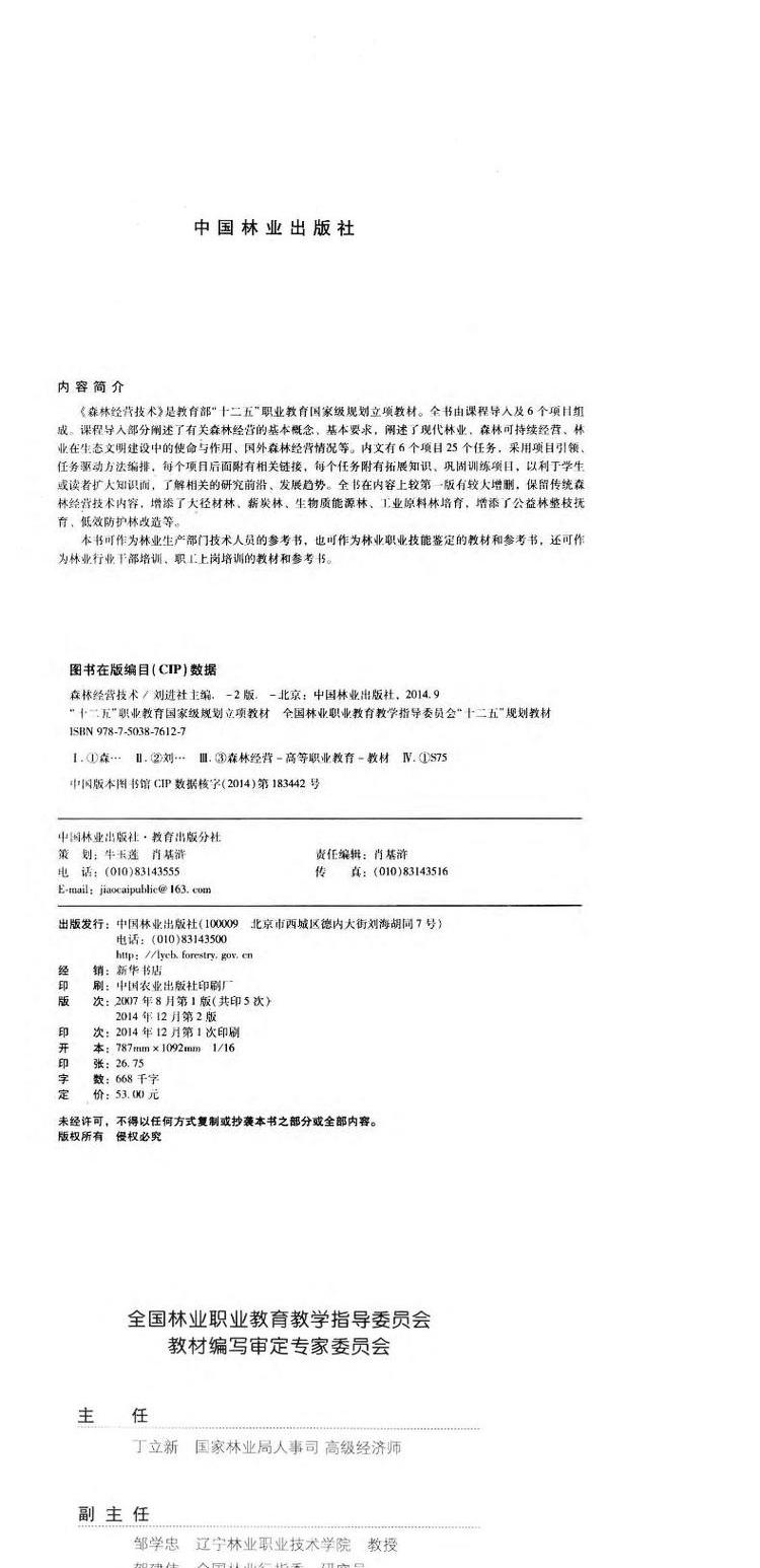 森林经营技术 第2版 7612 刘进社 全国林业职业教育教学指导委员会十二五规划教材 中国林业出版社教材 畅销书