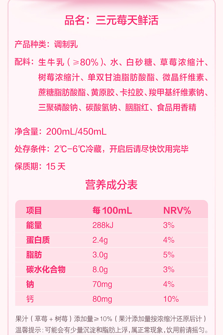 【自提-低温】三元莓天鲜活瓶装调制乳(200mL*3)
