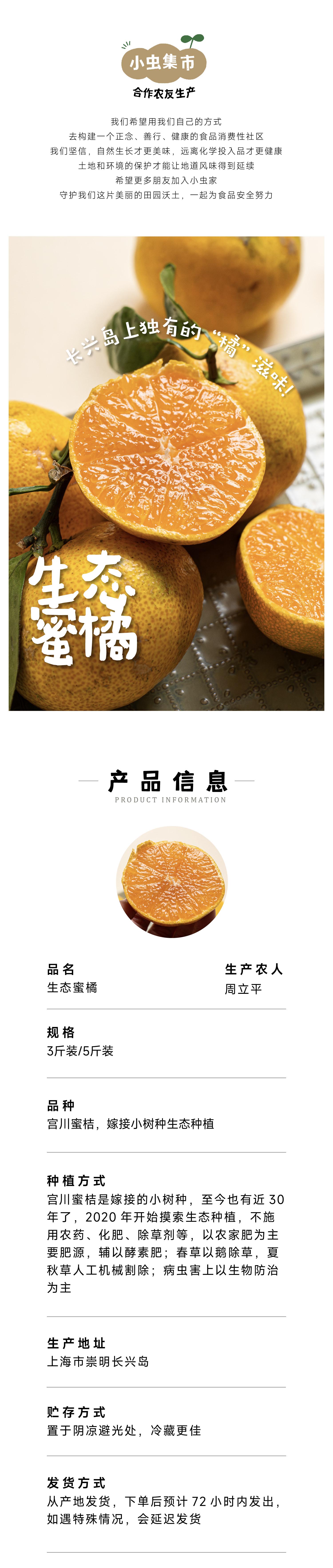 【买3斤送2斤】生态蜜橘 3斤/5斤 | 来自上海长兴岛,合作农友生产,生产者:周立平 *【公平贸易农人定价】