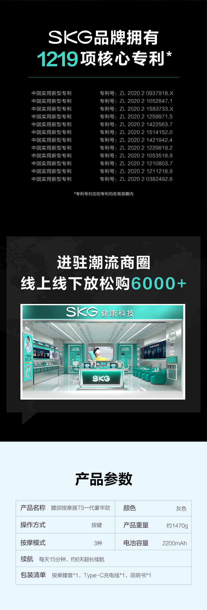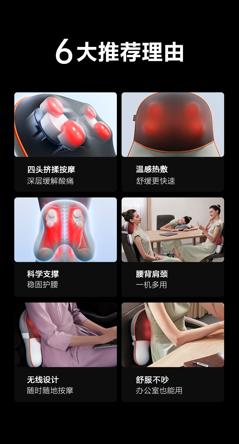 SKG腰部按摩仪器T5背部颈椎热敷车载午睡全身腰部按摩仪靠垫
