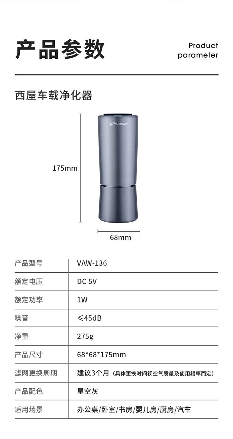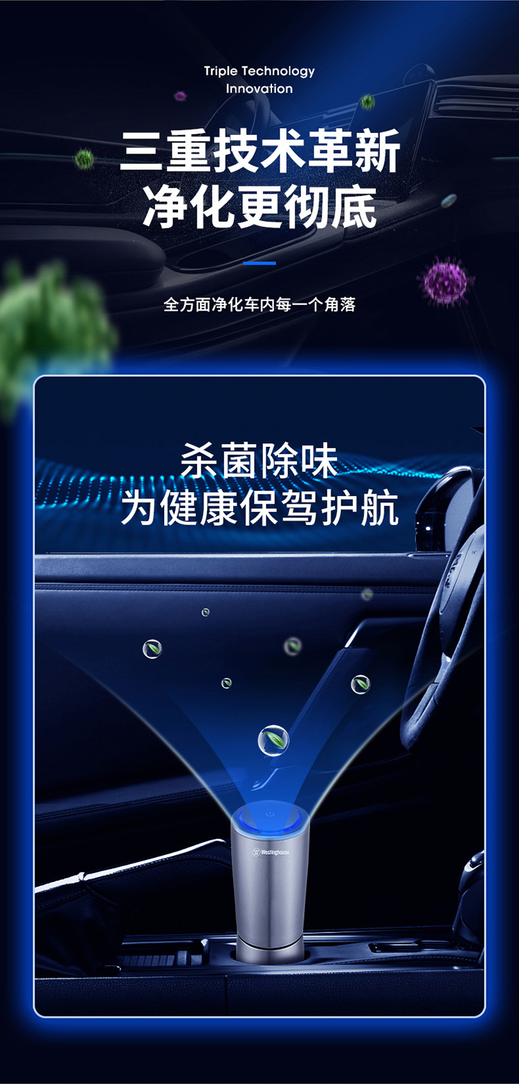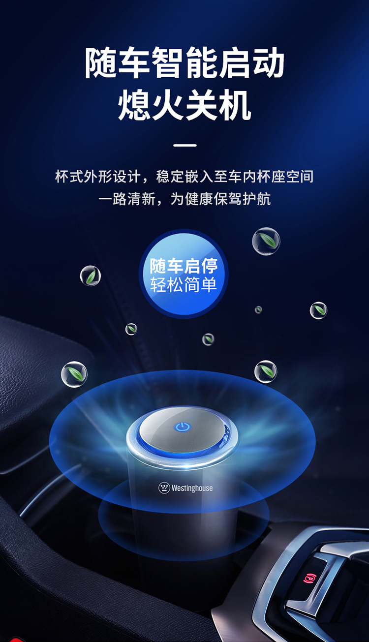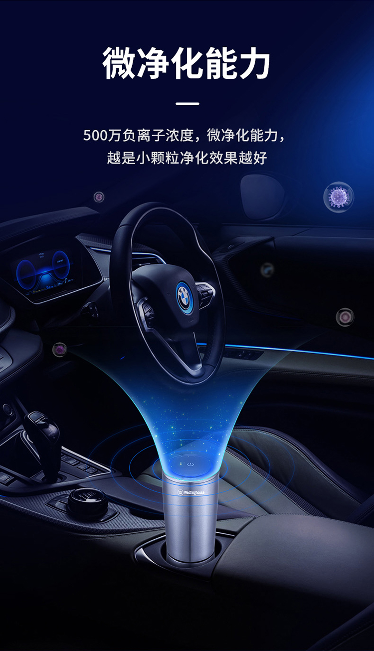 西屋(Westinghouse)车载空气净化器 汽车负离子净化器 新车车内除味除甲醛VAW-136