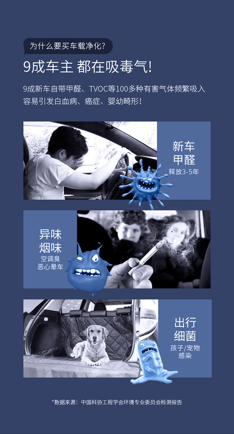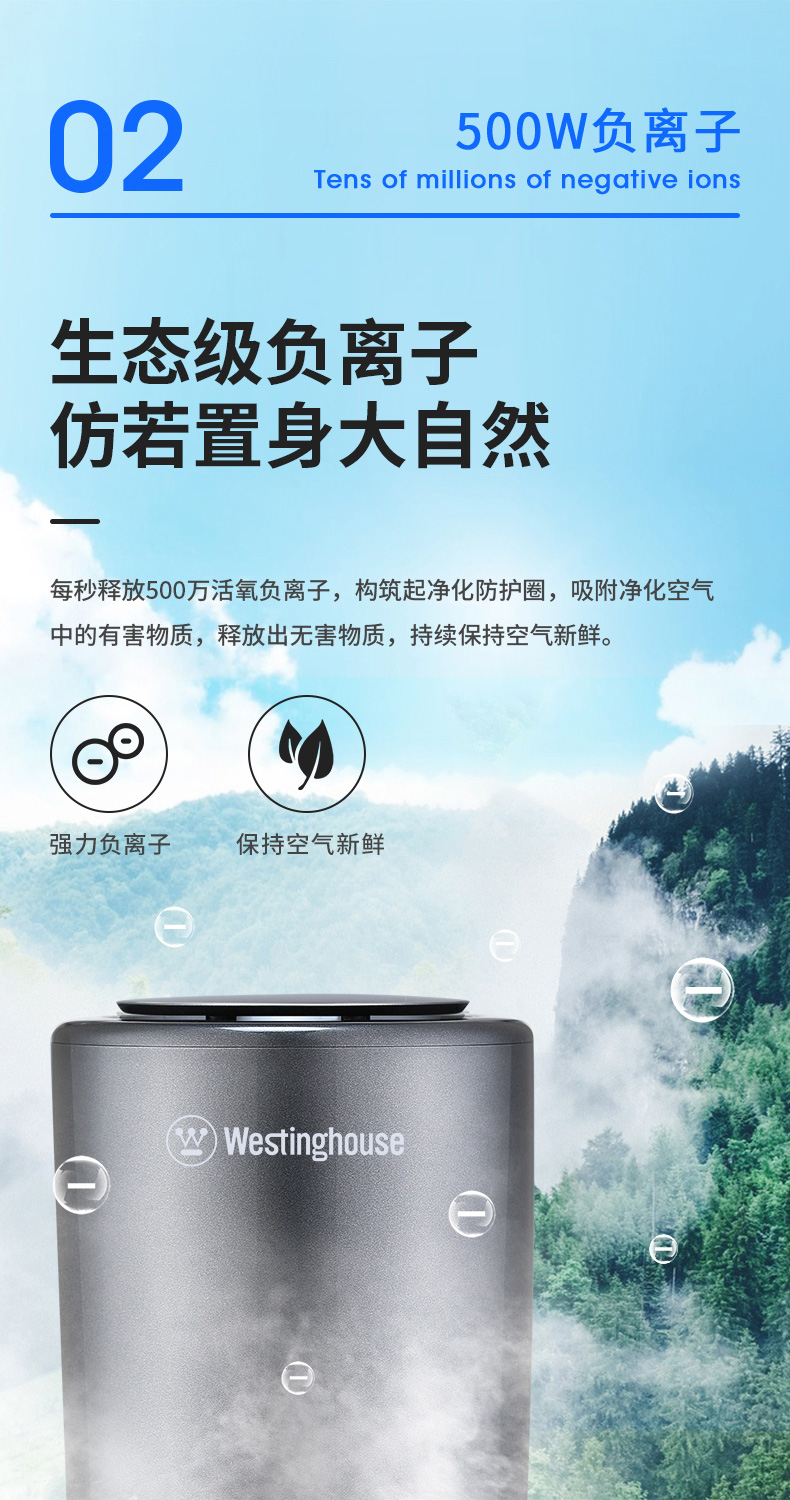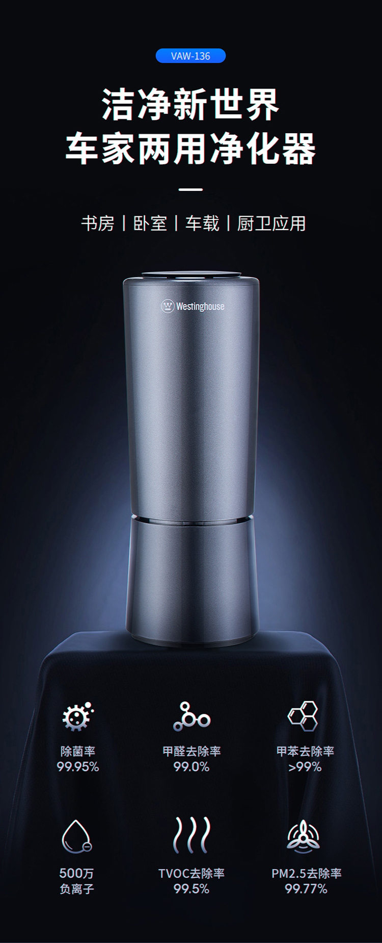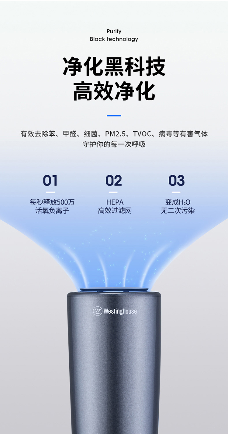 西屋(Westinghouse)车载空气净化器 汽车负离子净化器 新车车内除味除甲醛VAW-136