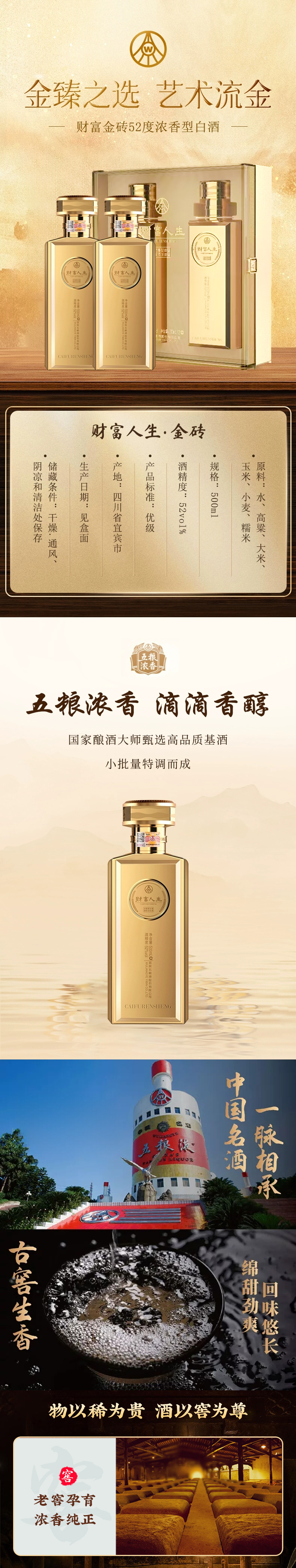 一价到底 【五粮液财富人生金砖酒】52度浓香型白酒,匠心勾调,酒香温和,品质稳定,雍容饱满,回味悠长。详情页领200元补贴券,券后只要499元/对。