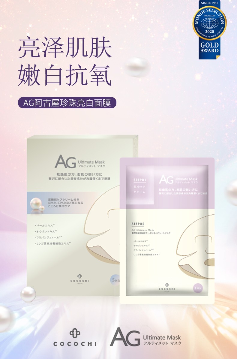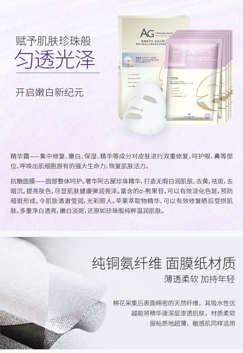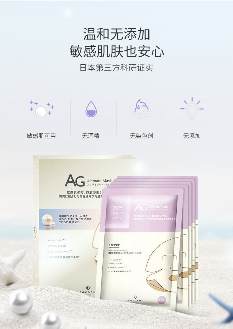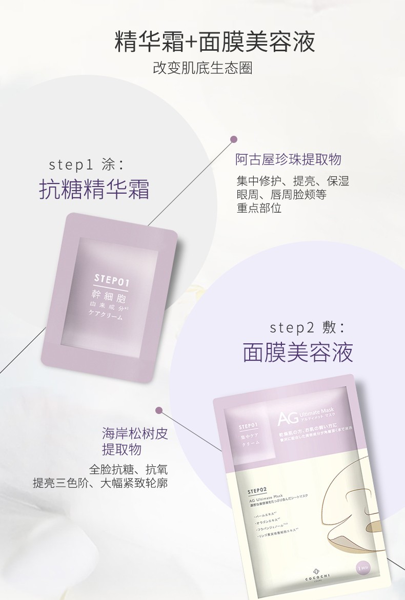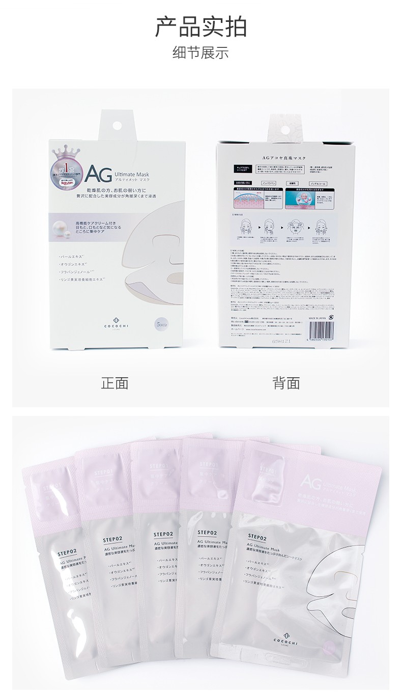 【保税仓】cocochi日本AG抗糖面膜提亮肤色补水保湿修护贴片面膜白色珍珠款