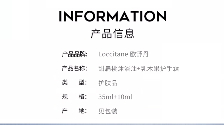 【保税直发】Loccitane欧舒丹甜扁桃乳木果旅行套装(甜扁桃沐浴油35ml+乳木果护手霜10ml) 【2028/5/21】