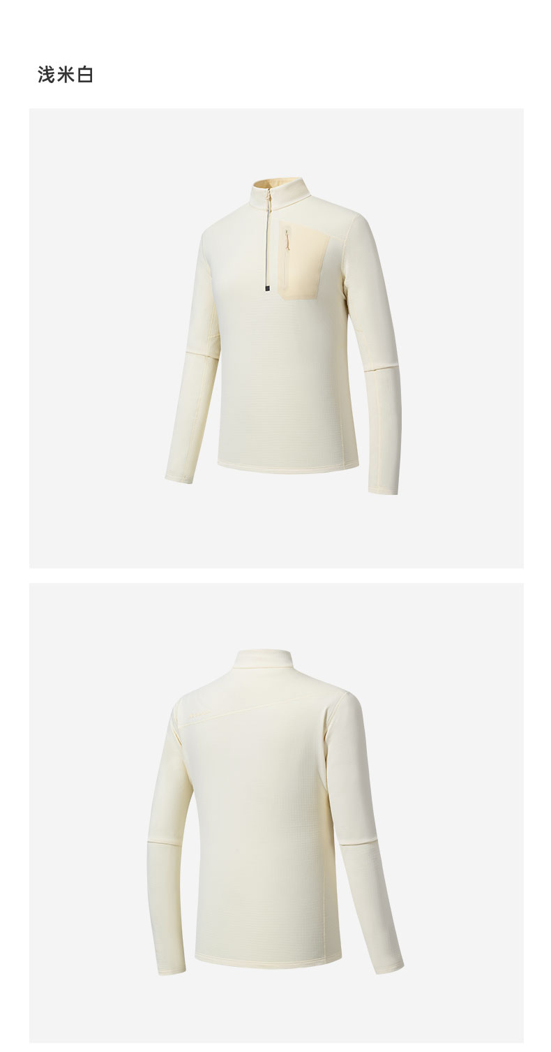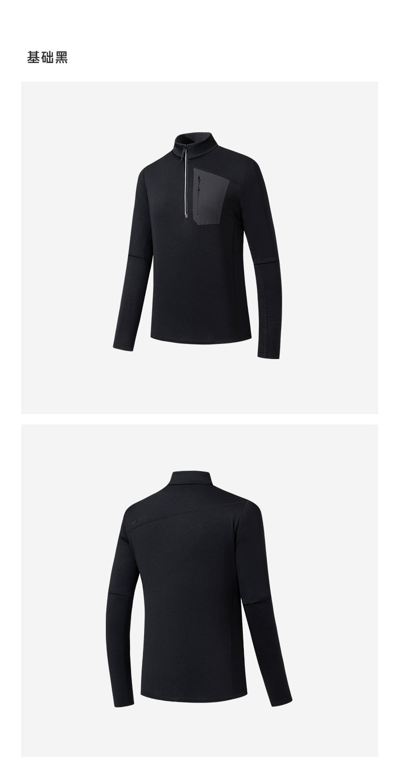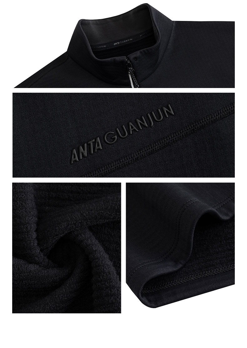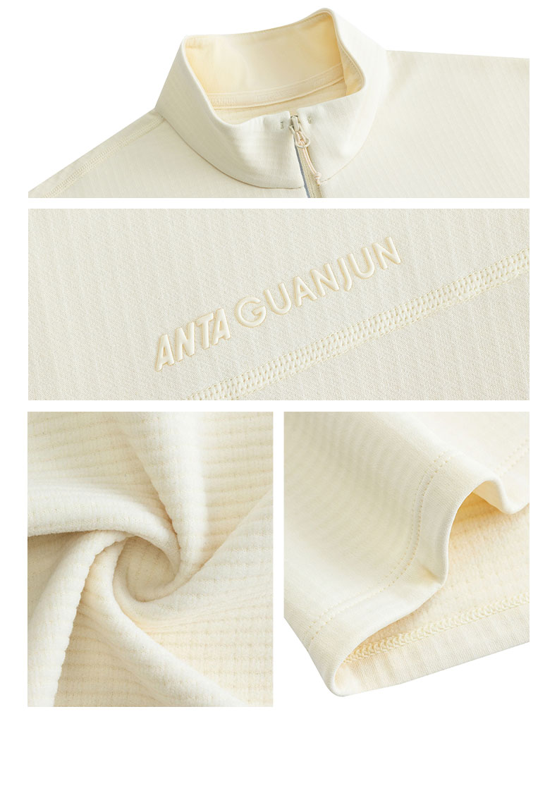 安踏冠军户外徒步系列密暖绒长袖T女士冬季半拉链长T恤162610407
