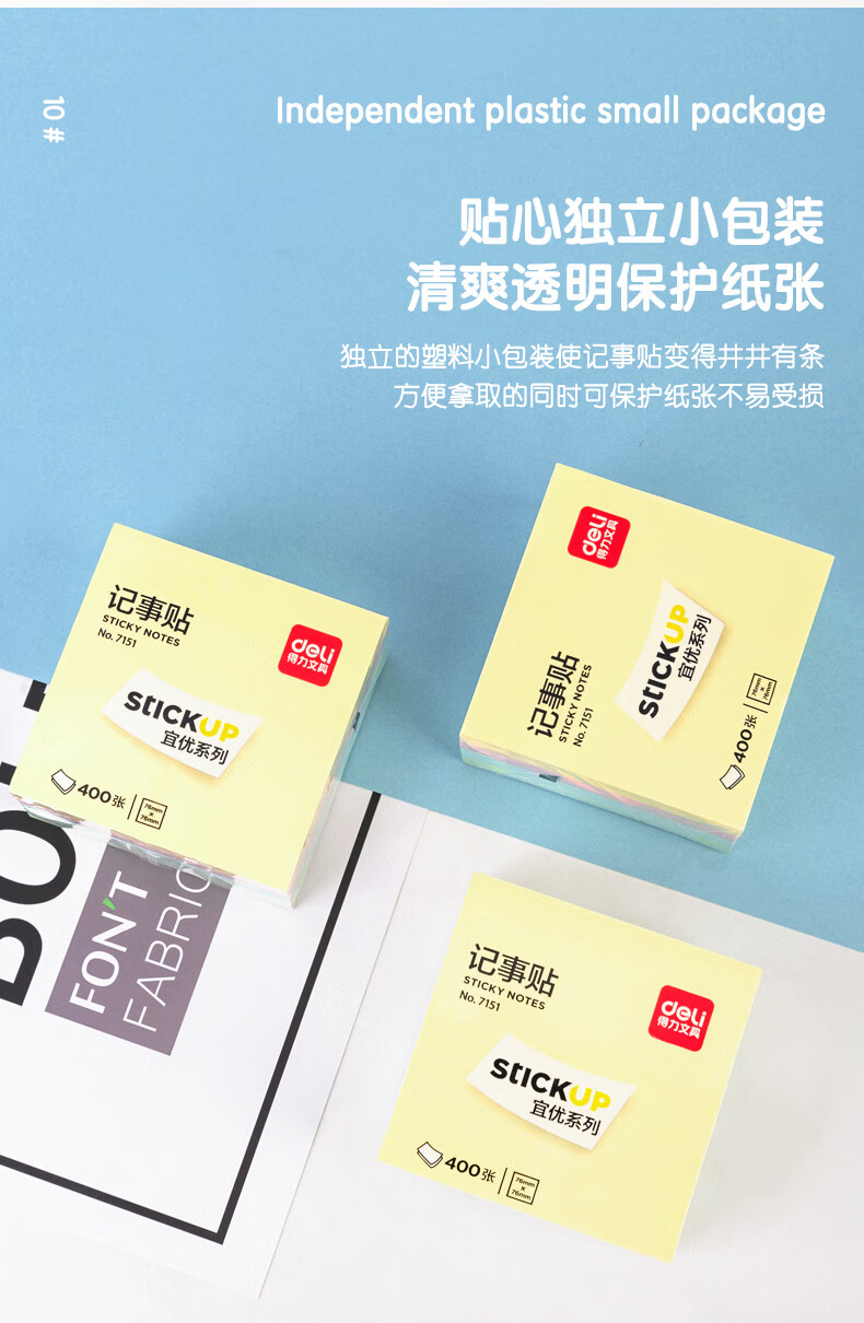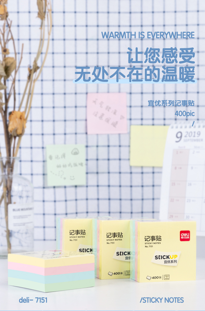 【仅供集采】得力(deli) 记事贴便利贴标签纸便签纸强黏性可反复粘撕 7151(76*76mm)四色共400贴