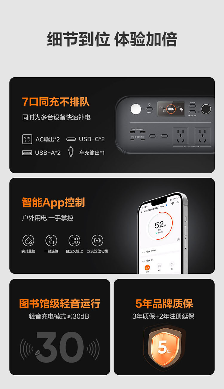 【旗舰产品】电小二户外电源1000Plus磷酸铁锂2000W大功率自驾露营家用应急车载储能