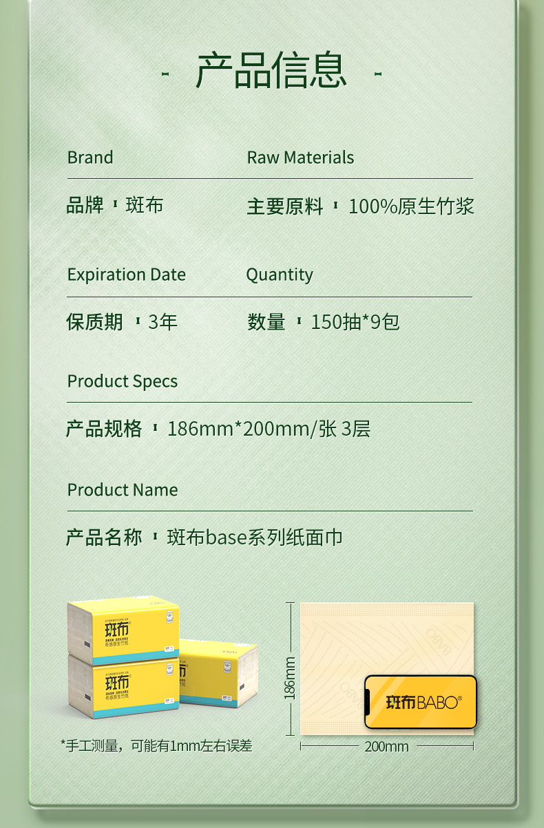 斑布(BABO) BASE系列 3层150抽 面巾纸抽纸9包 整箱销售 DBCR150A9